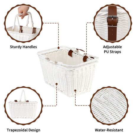 Trapezoidal Wicker Baskets with Wooden Handles for 3 Size