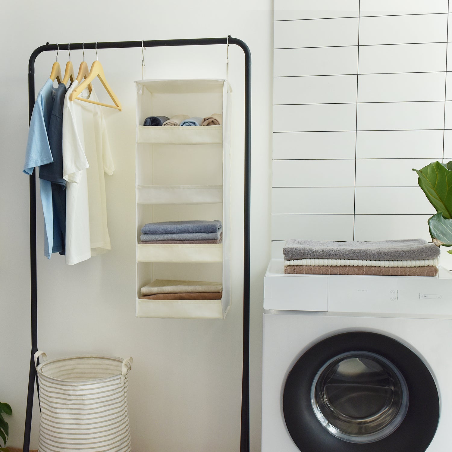 Maximize your storage space with the GRANNY SAYS 4-Shelf Hanging Organizer, measuring 37½" H x 12" W x 12" D with shelves 7¾" H. Ideal for closets, wardrobes, RVs, bedrooms, dorms, and camper trailers.