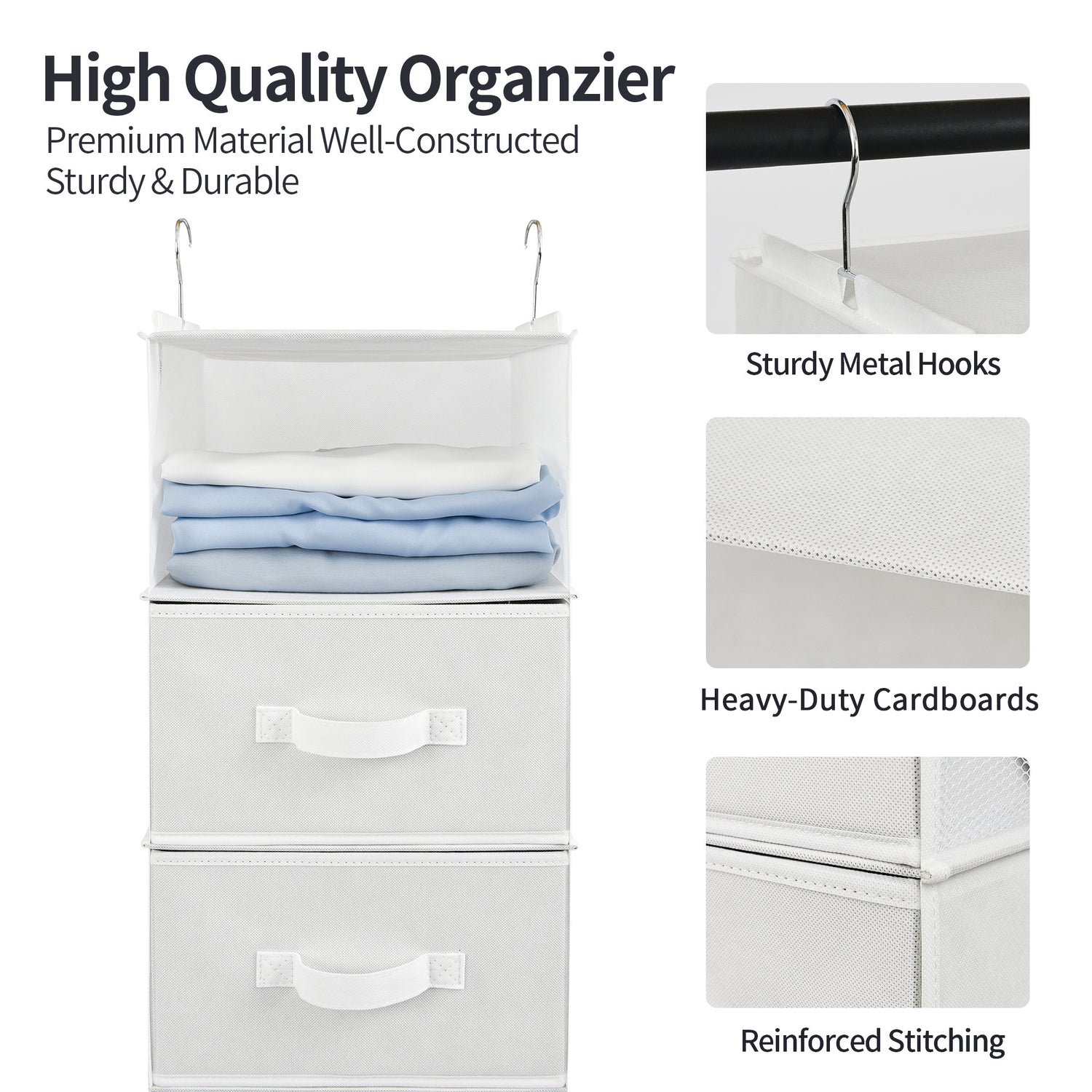 The open and foldable design allows quick access to stored items and easy folding for storage or travel. Equipped with 2 sturdy metal hooks, it hangs securely on most closet rods.