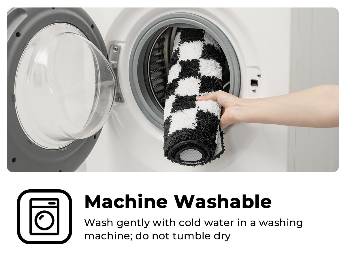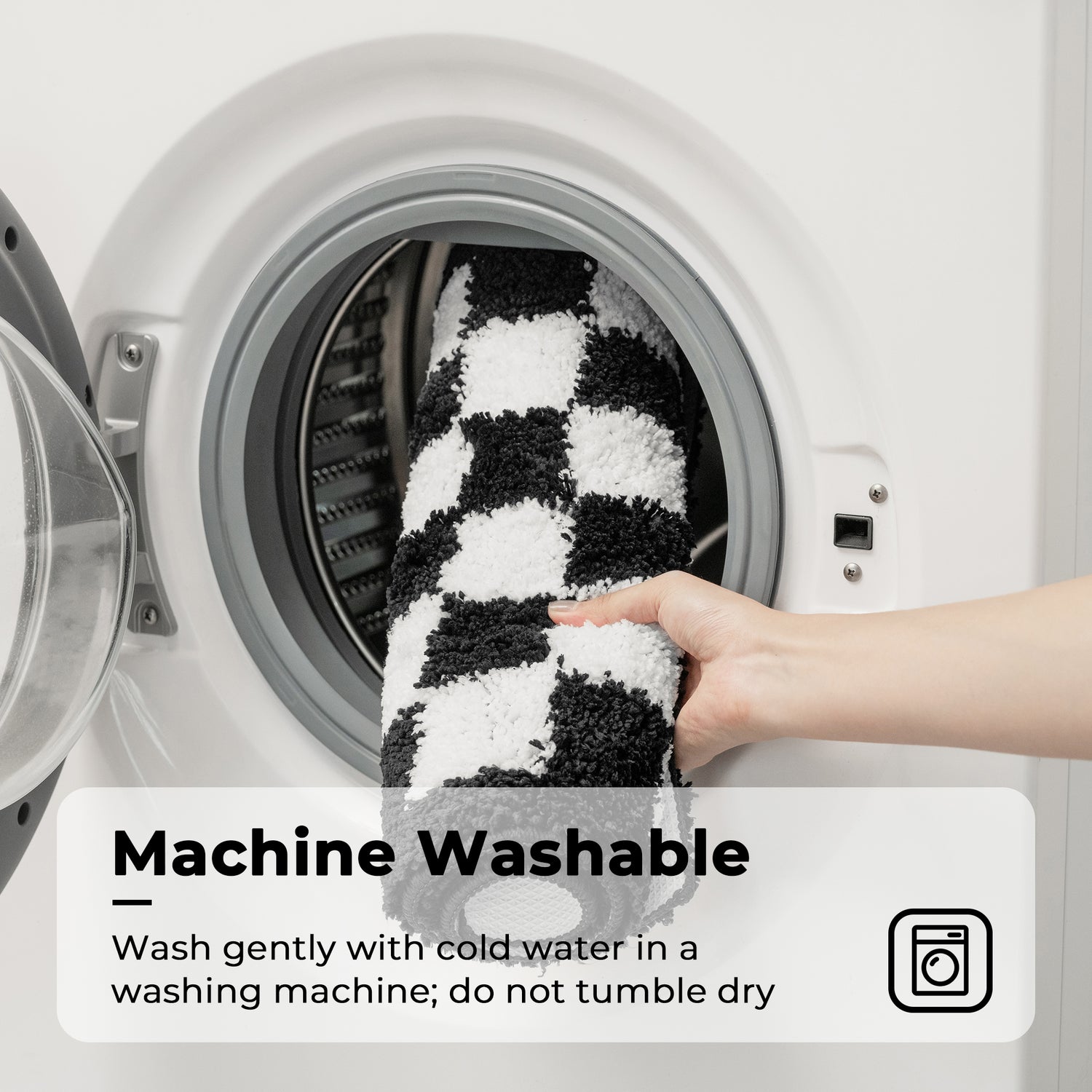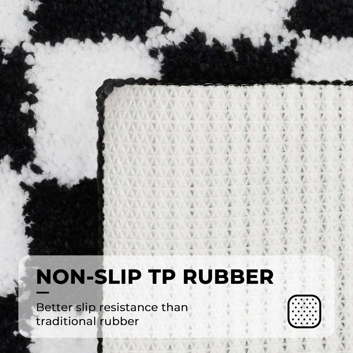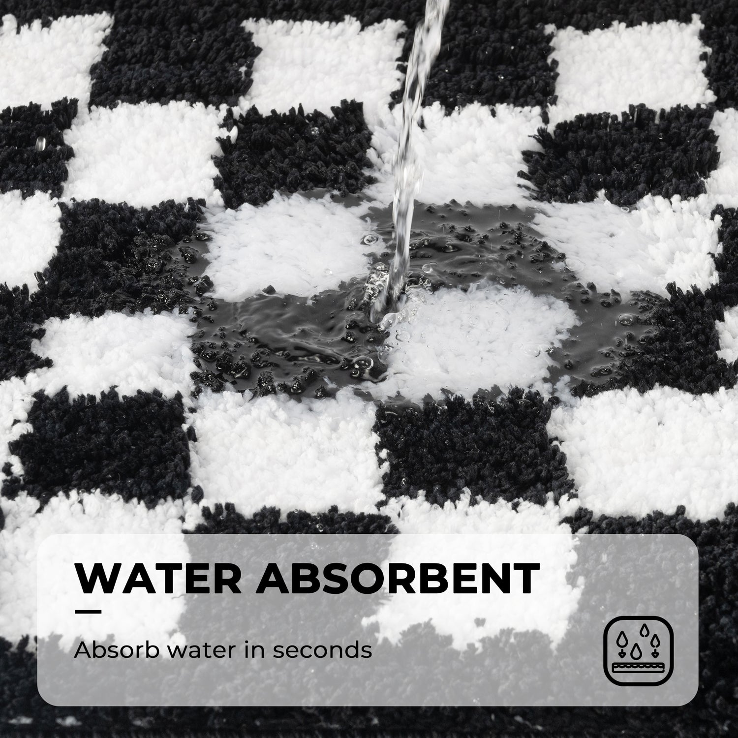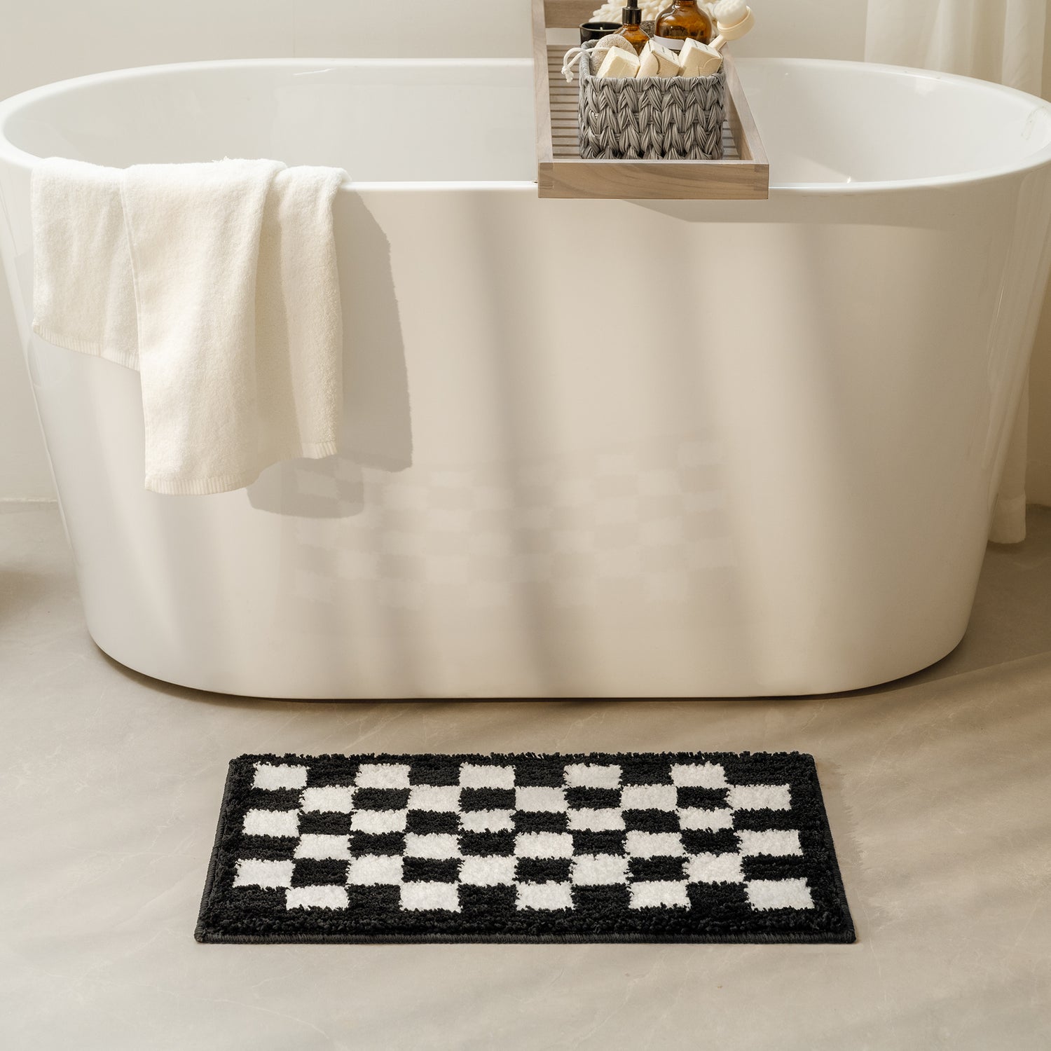Make a bold statement with this black and white checkered bathroom rug, a timeless design that fits both modern and classic decor. Made with soft microfiber and high-density pile, this black and white bath mat is ultra-absorbent and cozy underfoot.