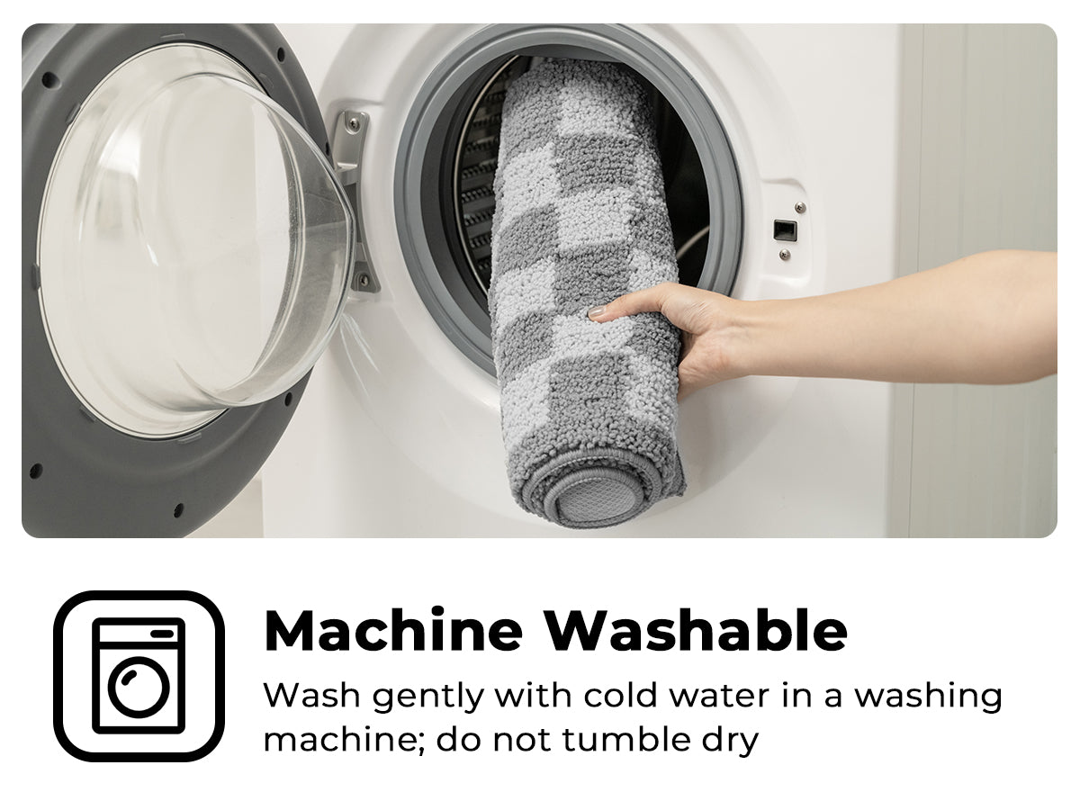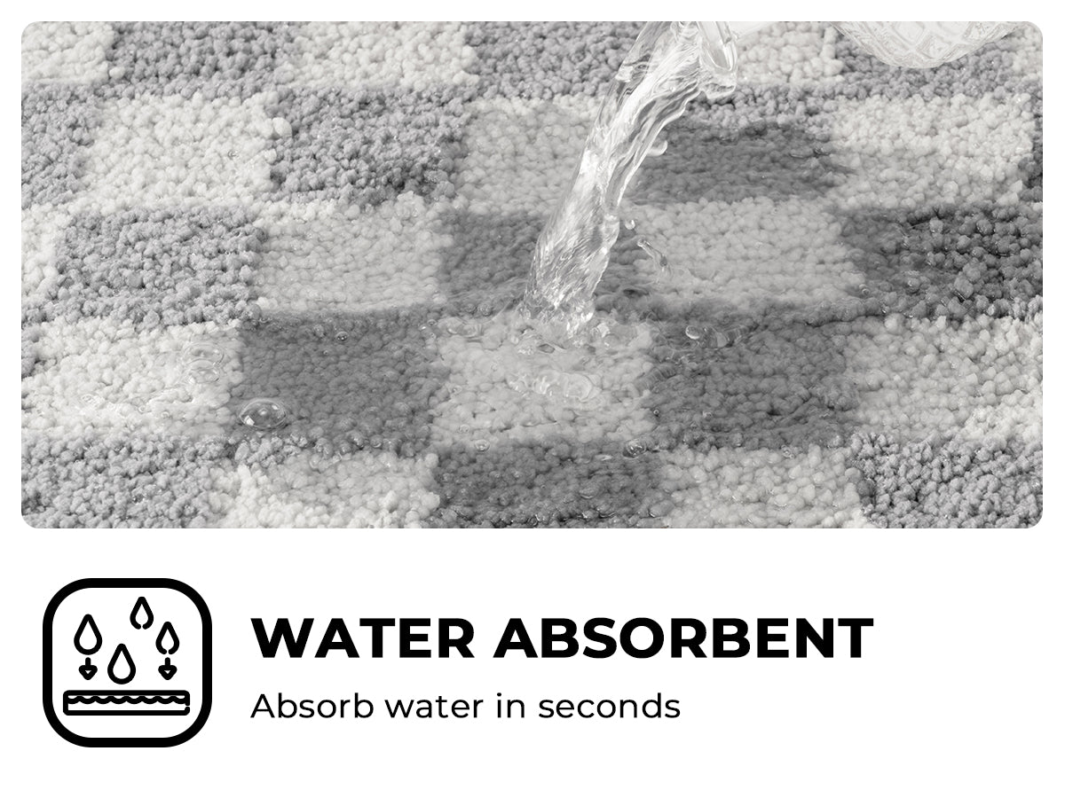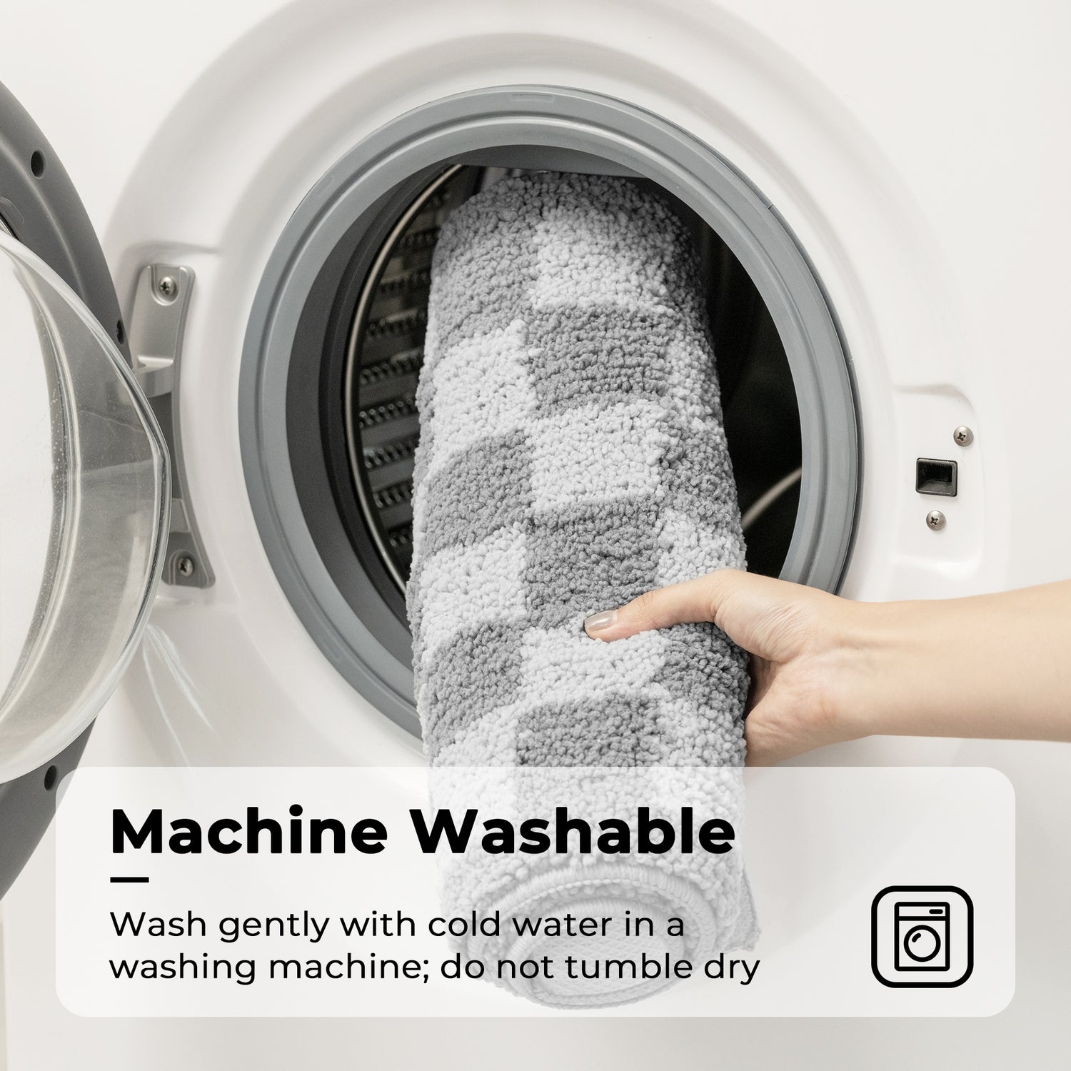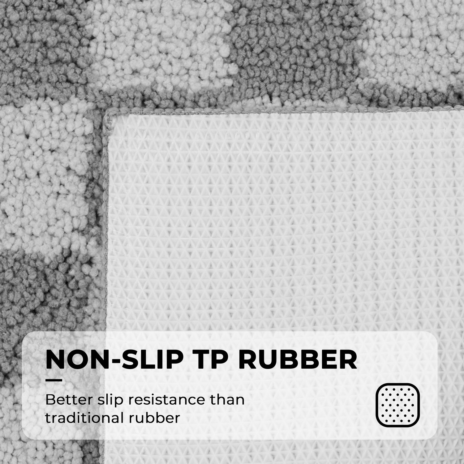 Add timeless style and cozy comfort to your space with this grey checkered bathroom rug. Its high-density microfiber is plush and ultra-soft, providing cloud-like comfort with every step. The thick fibers quickly absorb water, keeping your floor clean and dry.