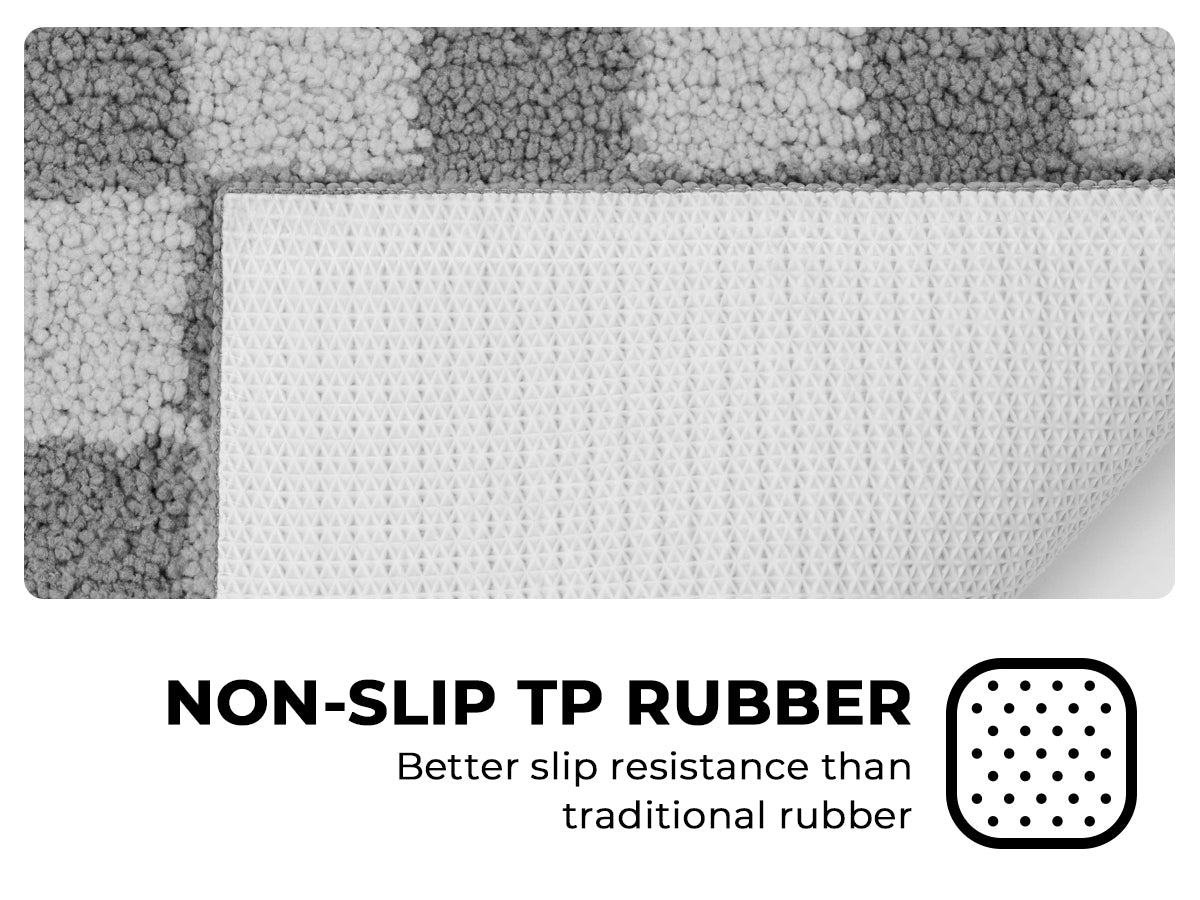 Designed for daily use, this non slip bath mat has a durable TP rubber backing for safety in wet areas. It's also a washable bathroom rug, easy to maintain and fade-resistant after multiple washes.