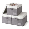 These decorative storage boxes come in a 3-pack and are perfect for organizing clothes, seasonal items, pillowcases, photos, toys, and more. The detachable lids keep contents protected from dust, while side handles allow you to effortlessly pull out or carry the bins from any shelf or closet.