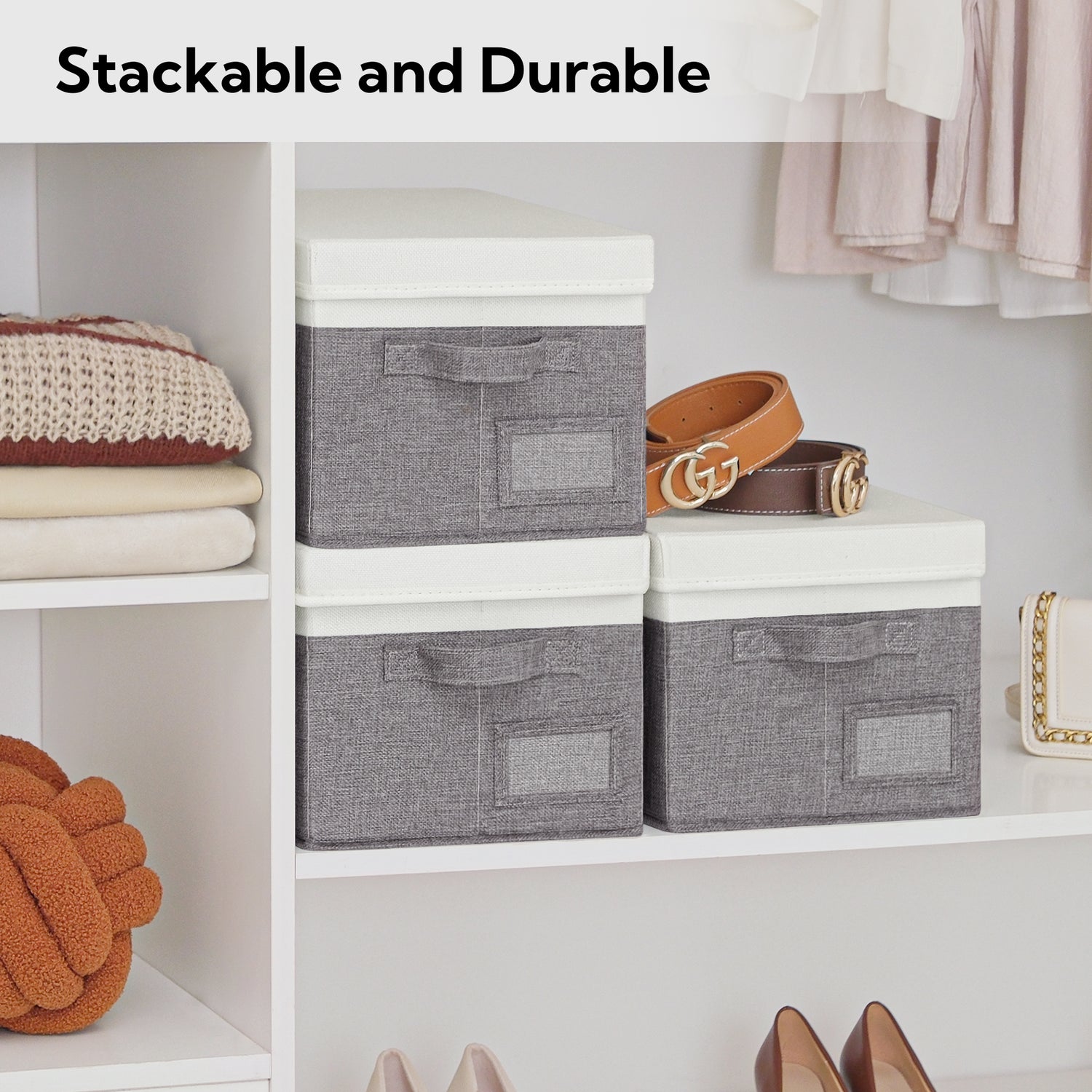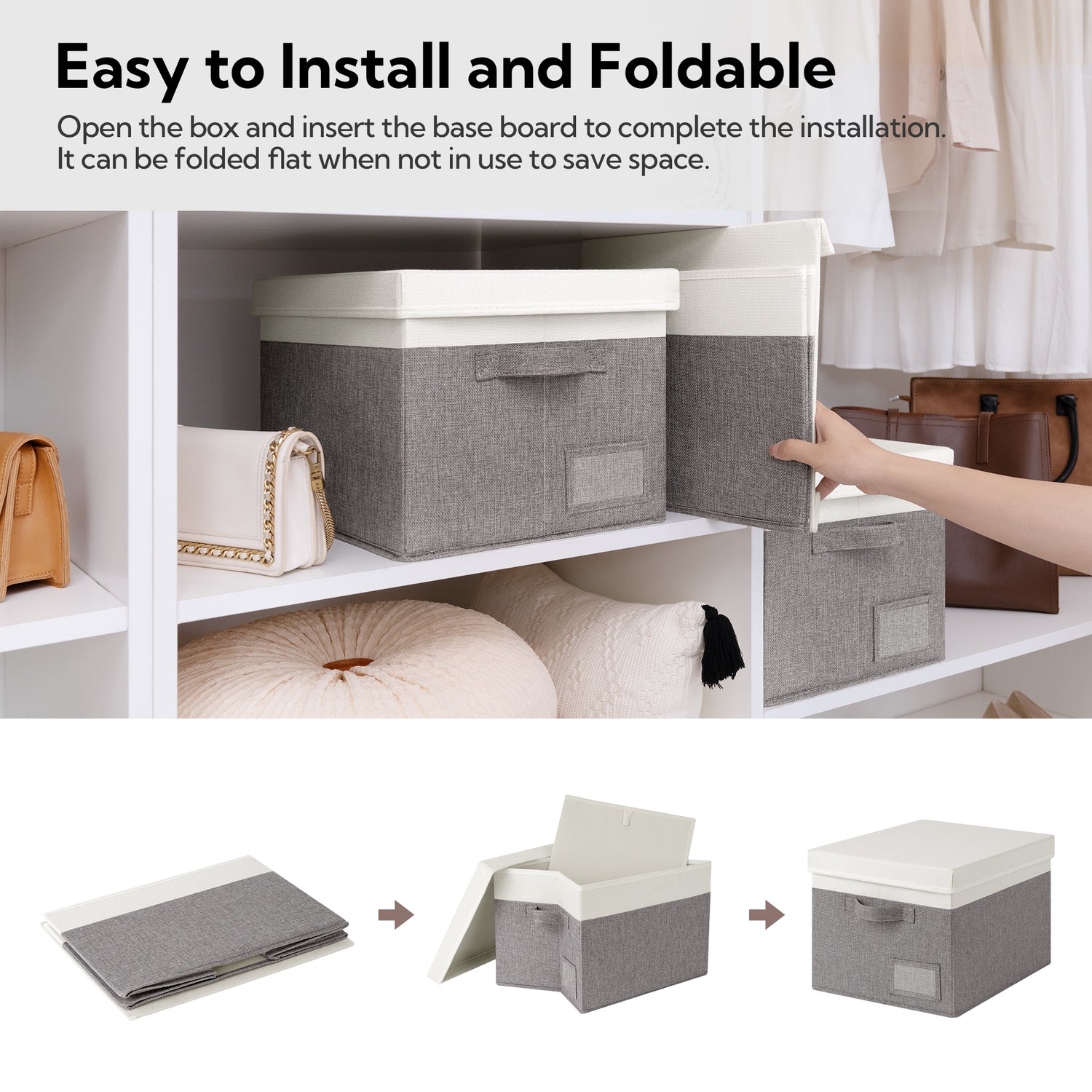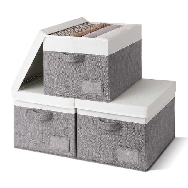 GRANNY SAYS fabric storage bins with lids are designed for stylish, dust-proof organization. Each storage basket is made from high-quality non-woven fabric and reinforced with durable boards, making them sturdy enough to stack yet light enough to move easily.
