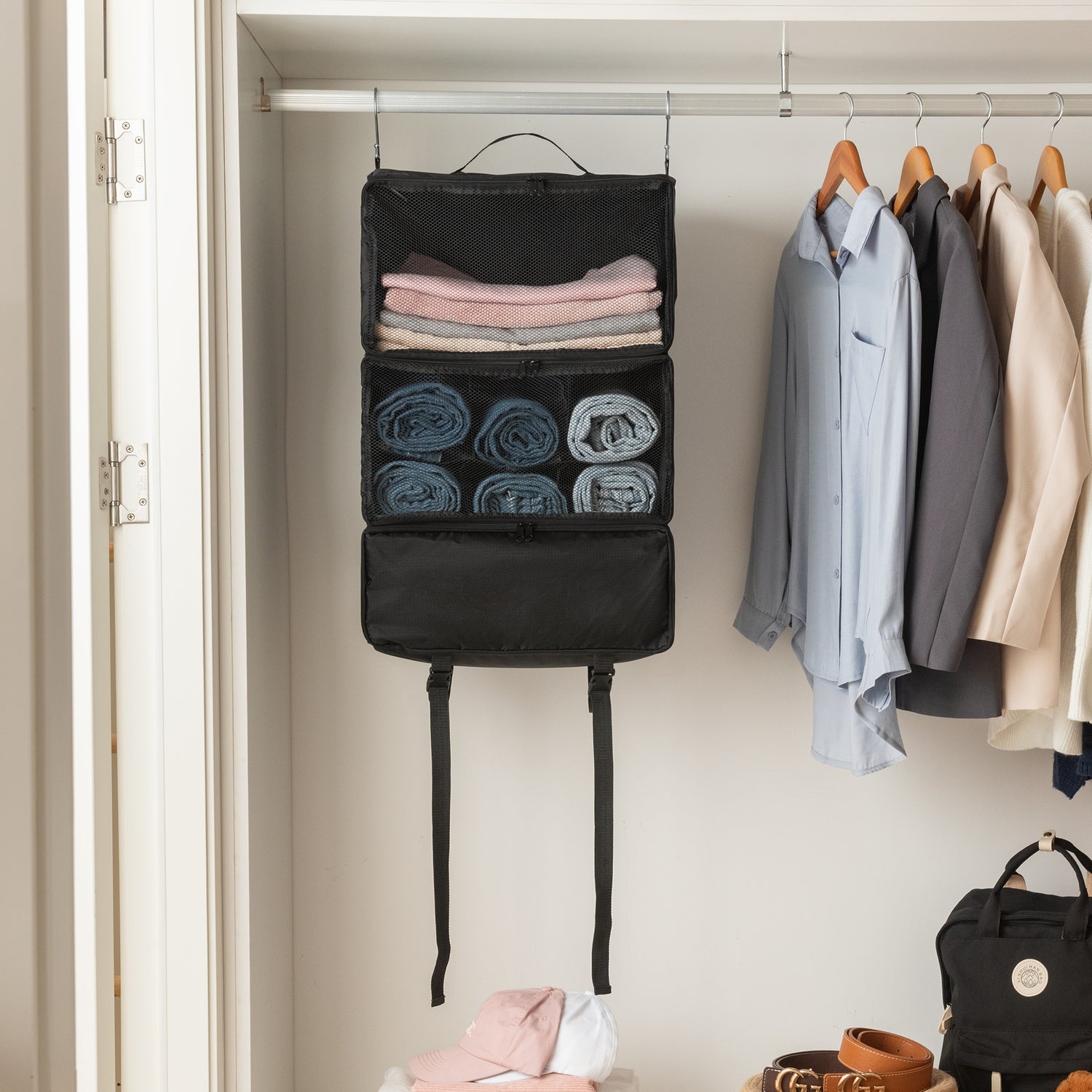 3-Shelf Portable Hanging Packing Organizer - Black / Large is backordered and will ship as soon as it is back in stock.