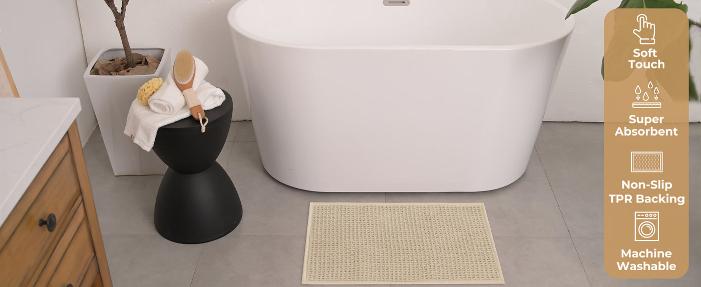 Experience the comfort of chenille bathroom rugs crafted from premium, soft chenille fiber that quickly absorbs water to keep your feet dry and floors clean. The non-slip TPR backing provides stability and prevents slips on wet surfaces.