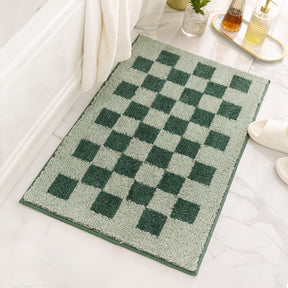 Bring calm and character to your bathroom with this green checkered bathroom rug. Made from ultra-soft, thick microfiber, it provides cushiony comfort and high absorbency to keep floors dry.
