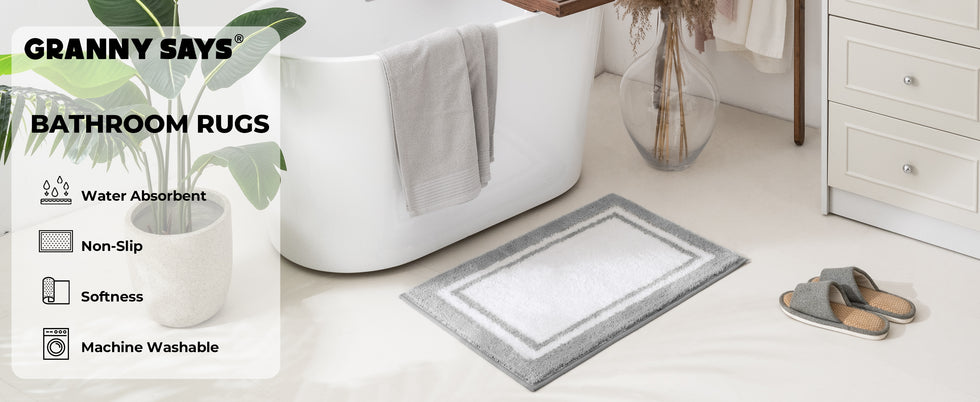 Our luxury microfiber bathroom rugs feature a stylish geometric border design, adding an elegant and modern touch to your bathroom, tub, shower, or sink area. These plush, soft bath mats deliver cloud-like comfort for your feet and quickly absorb water to keep floors dry and safe.