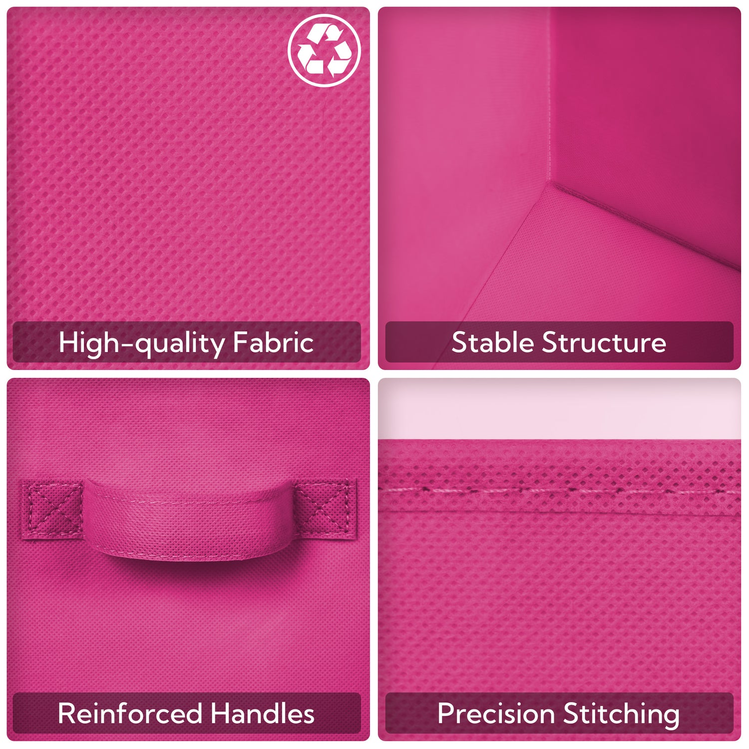 - Each cube bin has a sewn-in sturdy handle on the front.