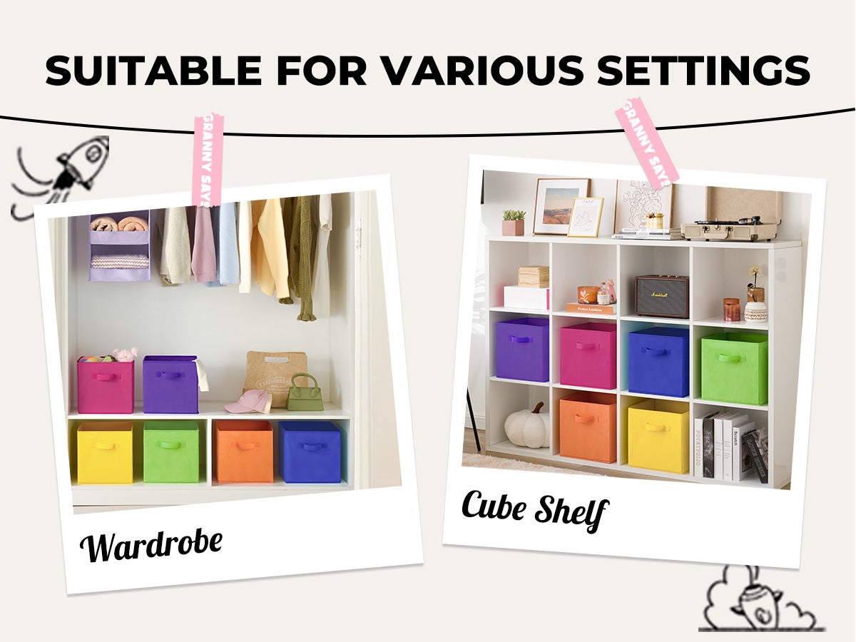 6-Pack 11 Inch Rainbow Colorful Cube Storage Bins