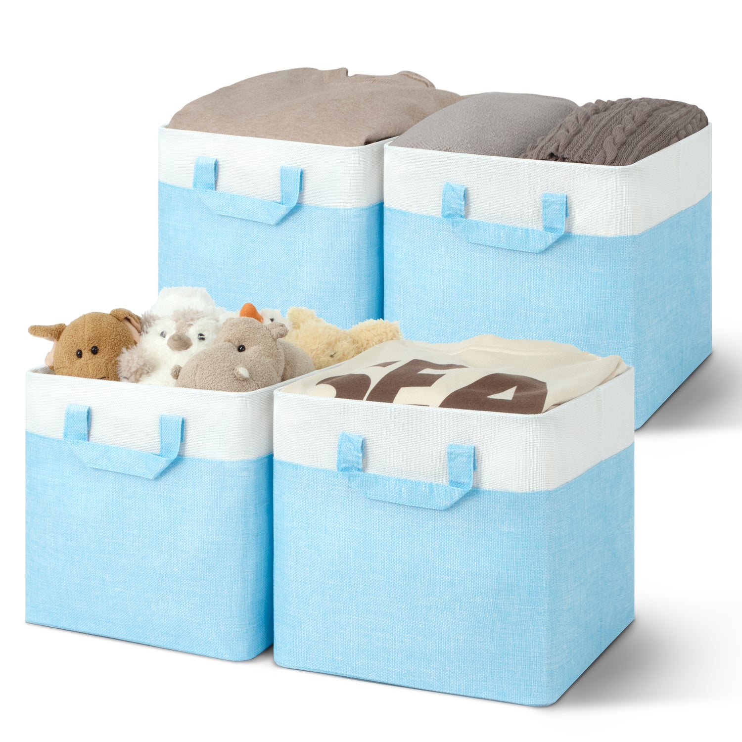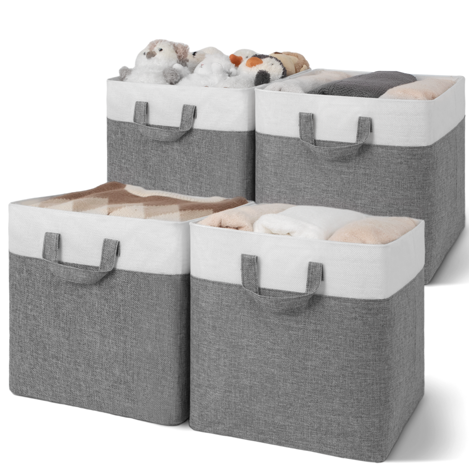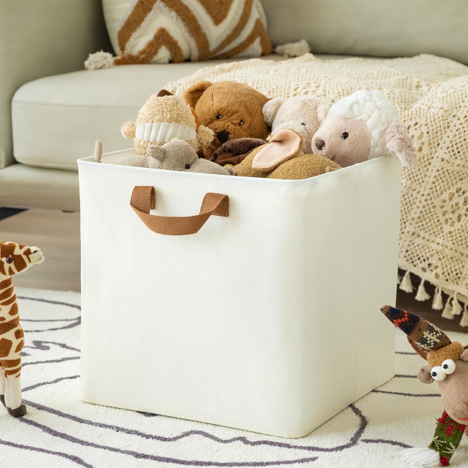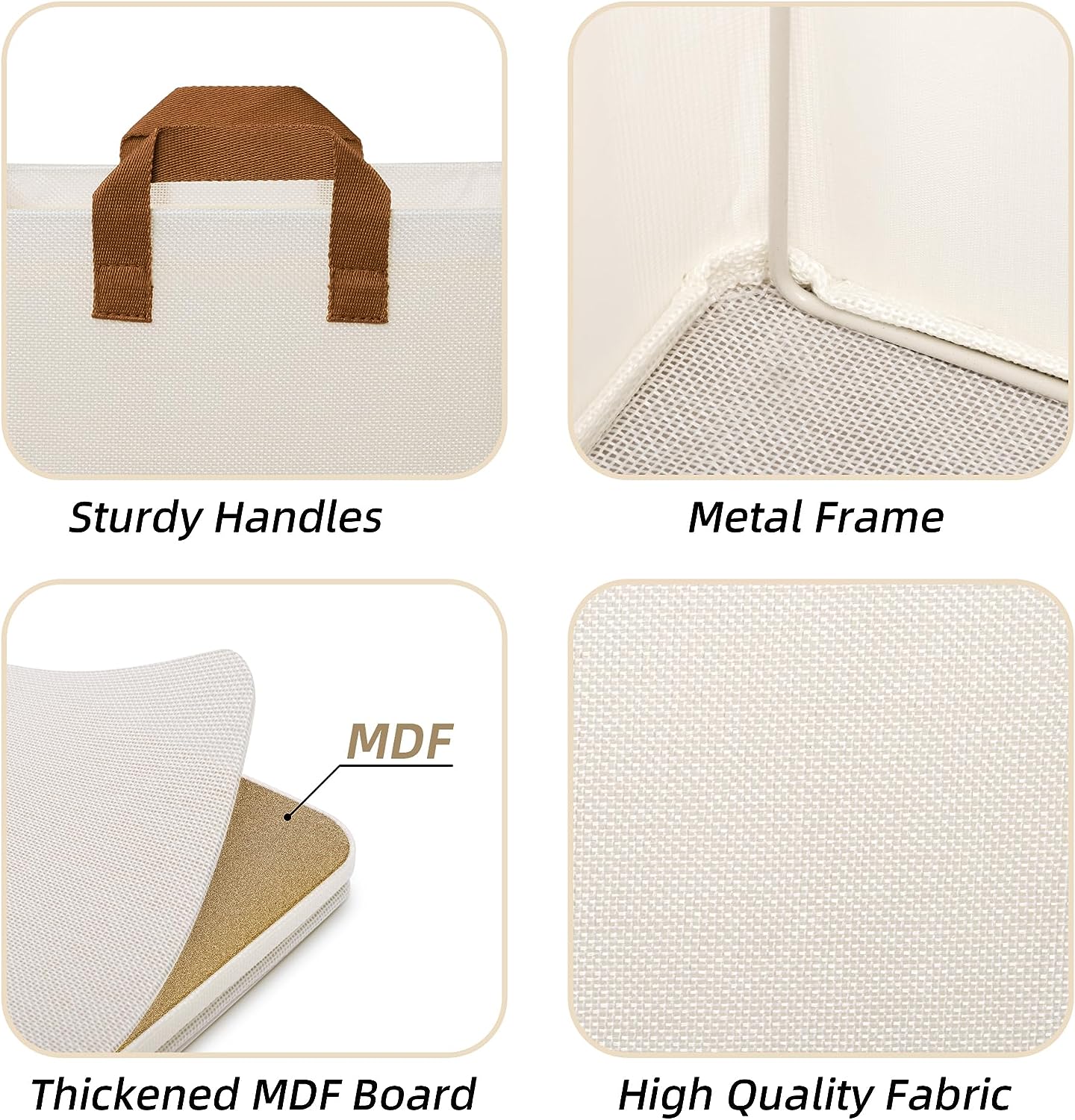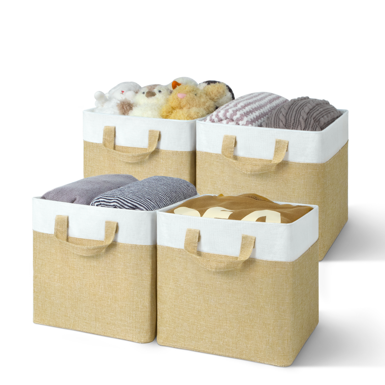 These fabric storage cubes feature premium polyester material and a reinforced MDF base capable of holding up to 30 lbs. The collapsible design lets you fold cubes flat when not in use, saving space. Equipped with two strong fabric handles, they are easy to carry and reposition.
