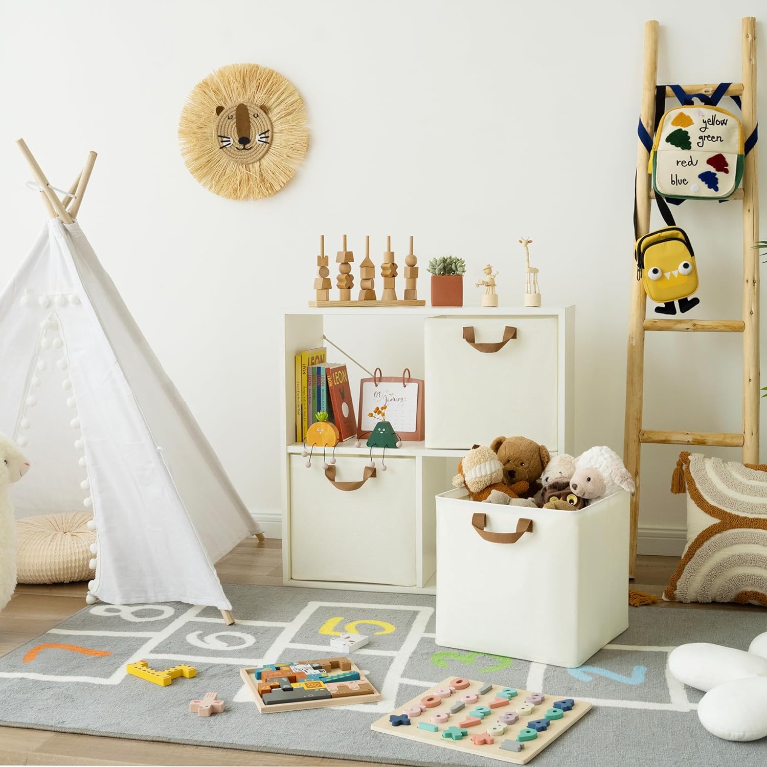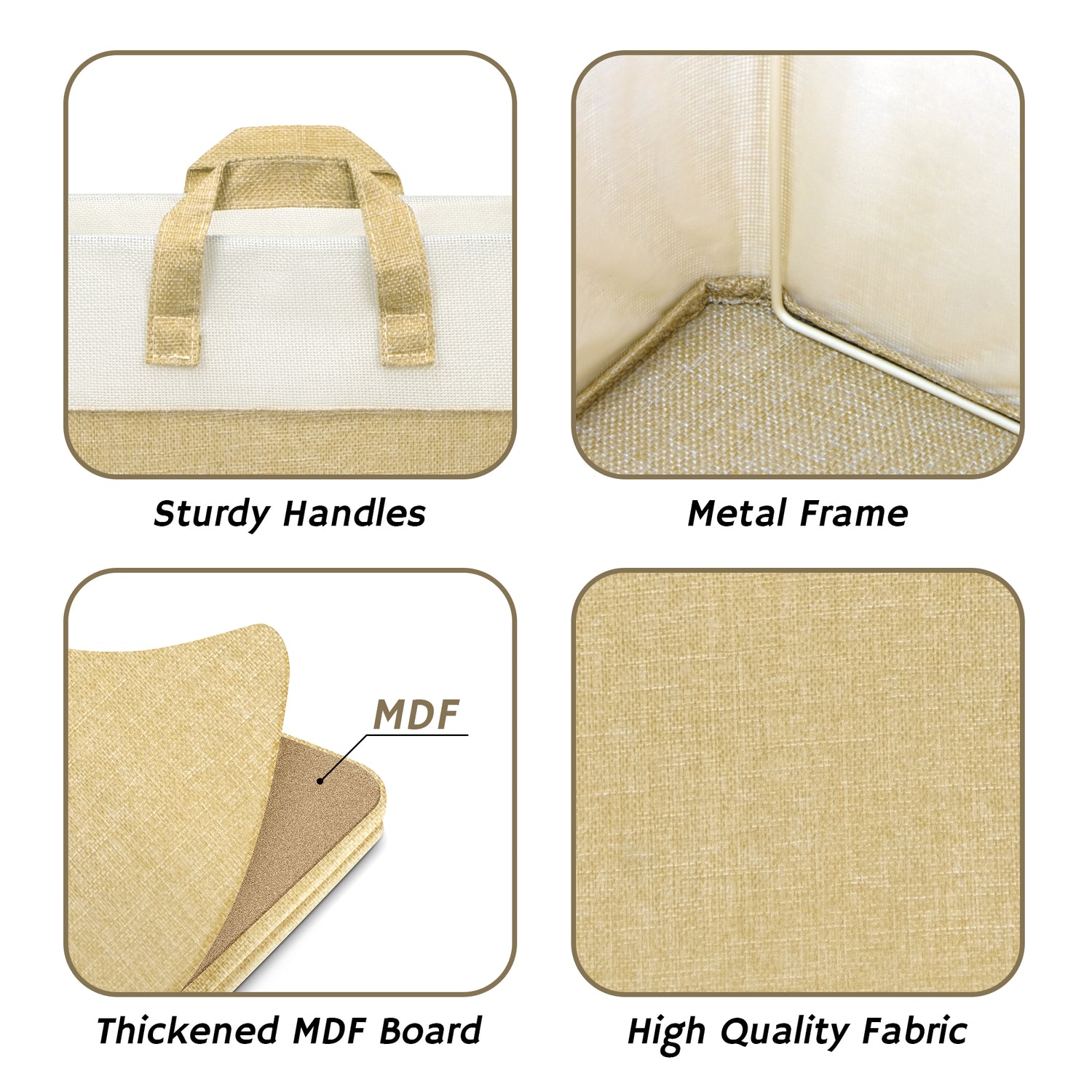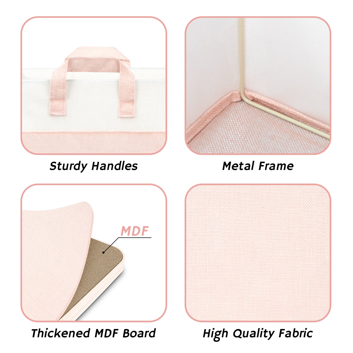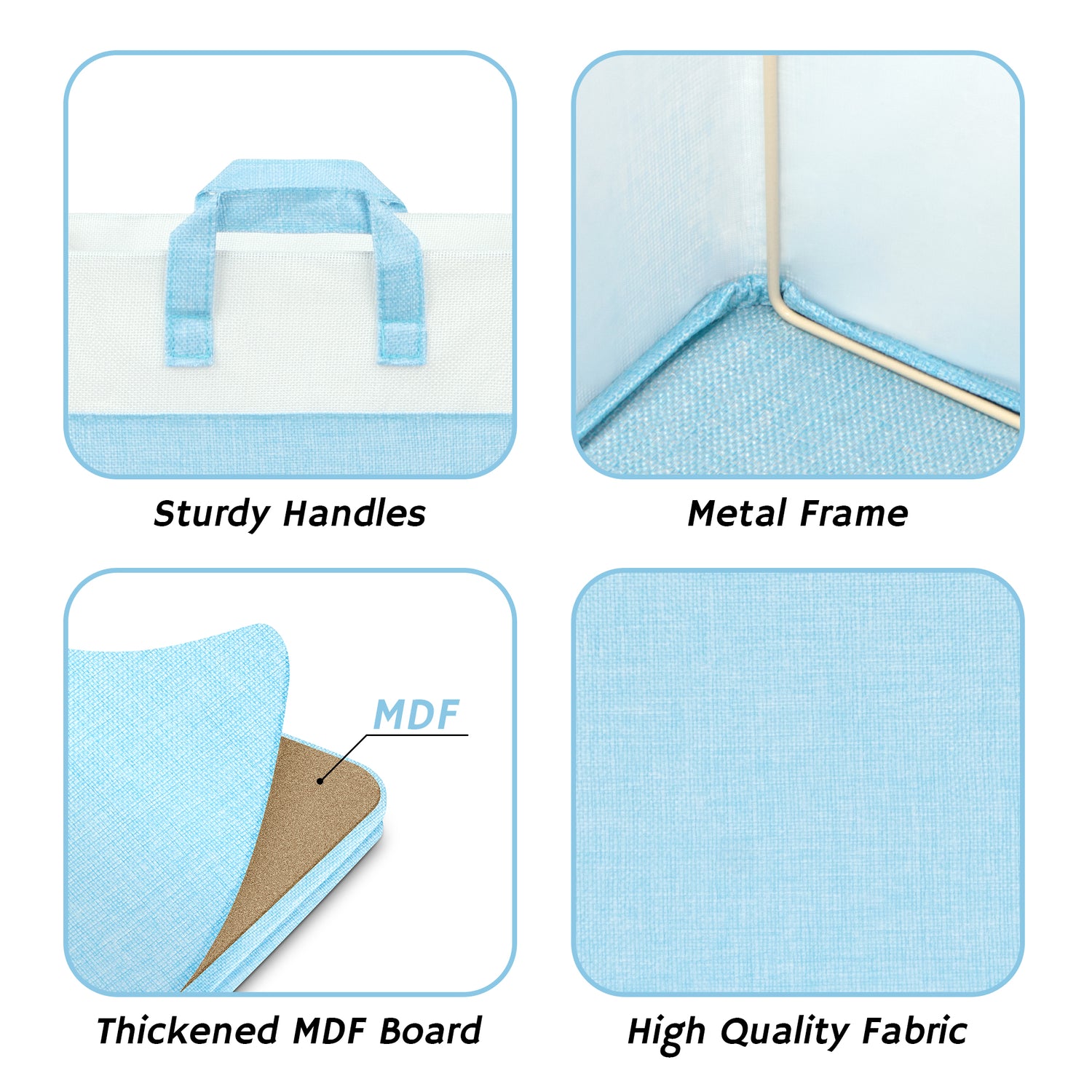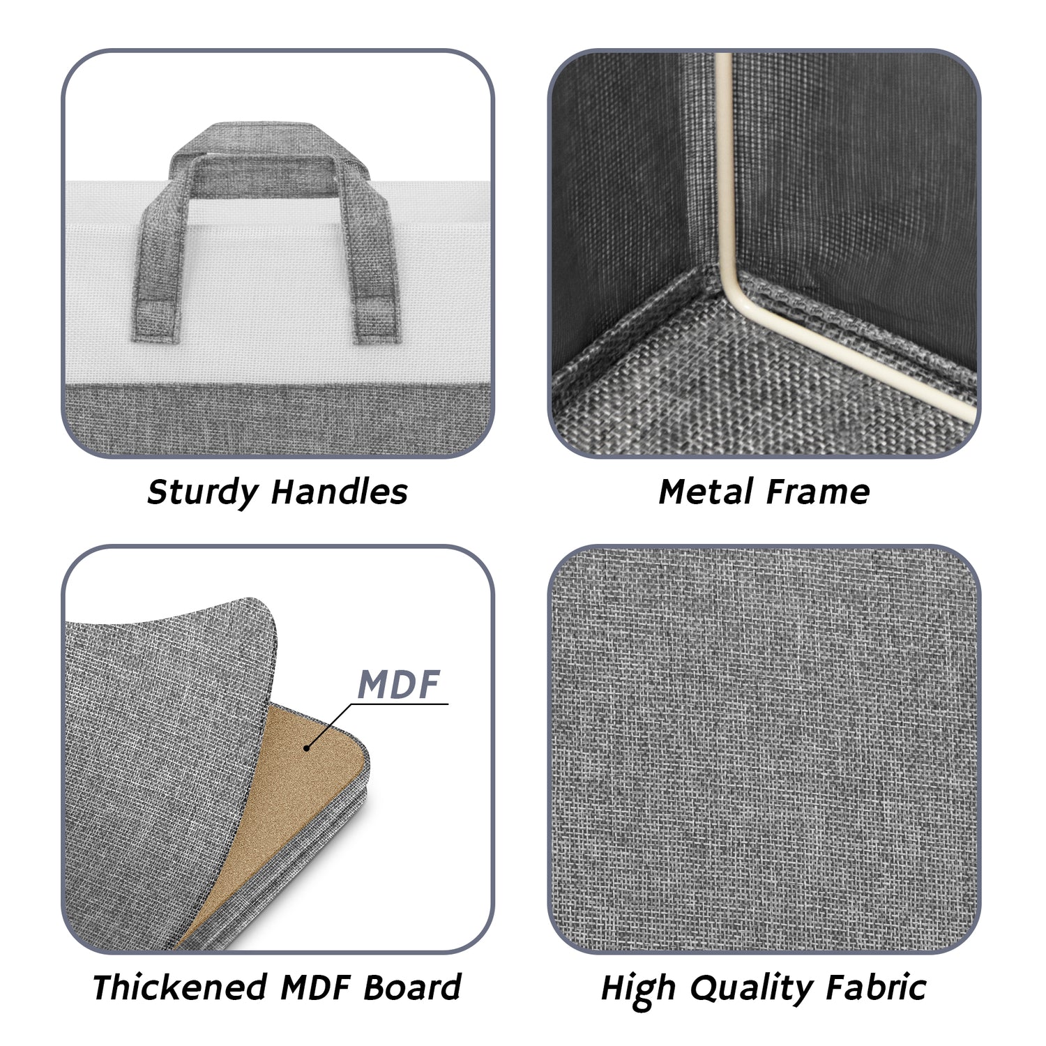 These fabric storage cubes feature premium polyester material and a reinforced MDF base capable of holding up to 30 lbs. The collapsible design lets you fold cubes flat when not in use, saving space. Equipped with two strong fabric handles, they are easy to carry and reposition.