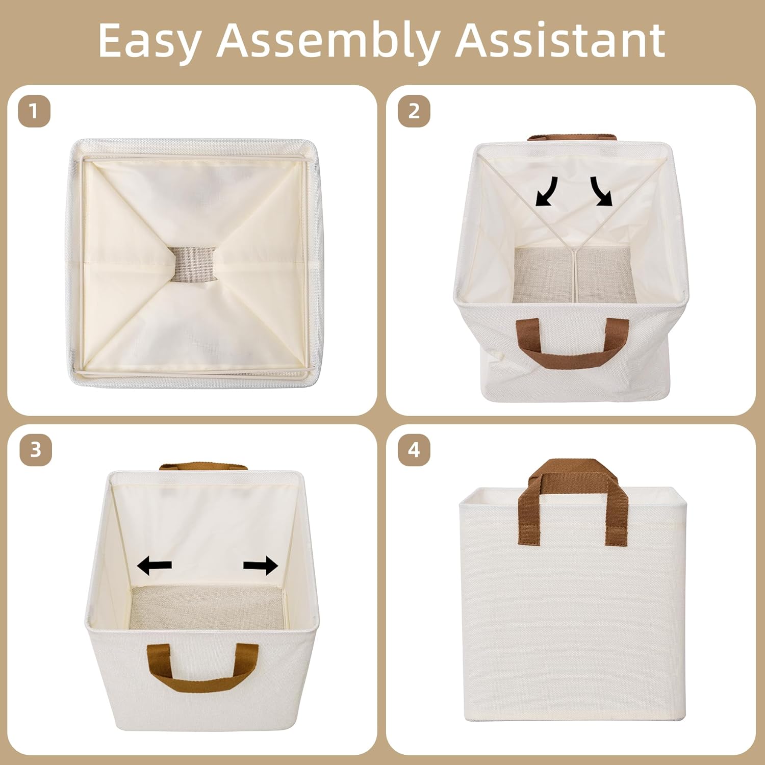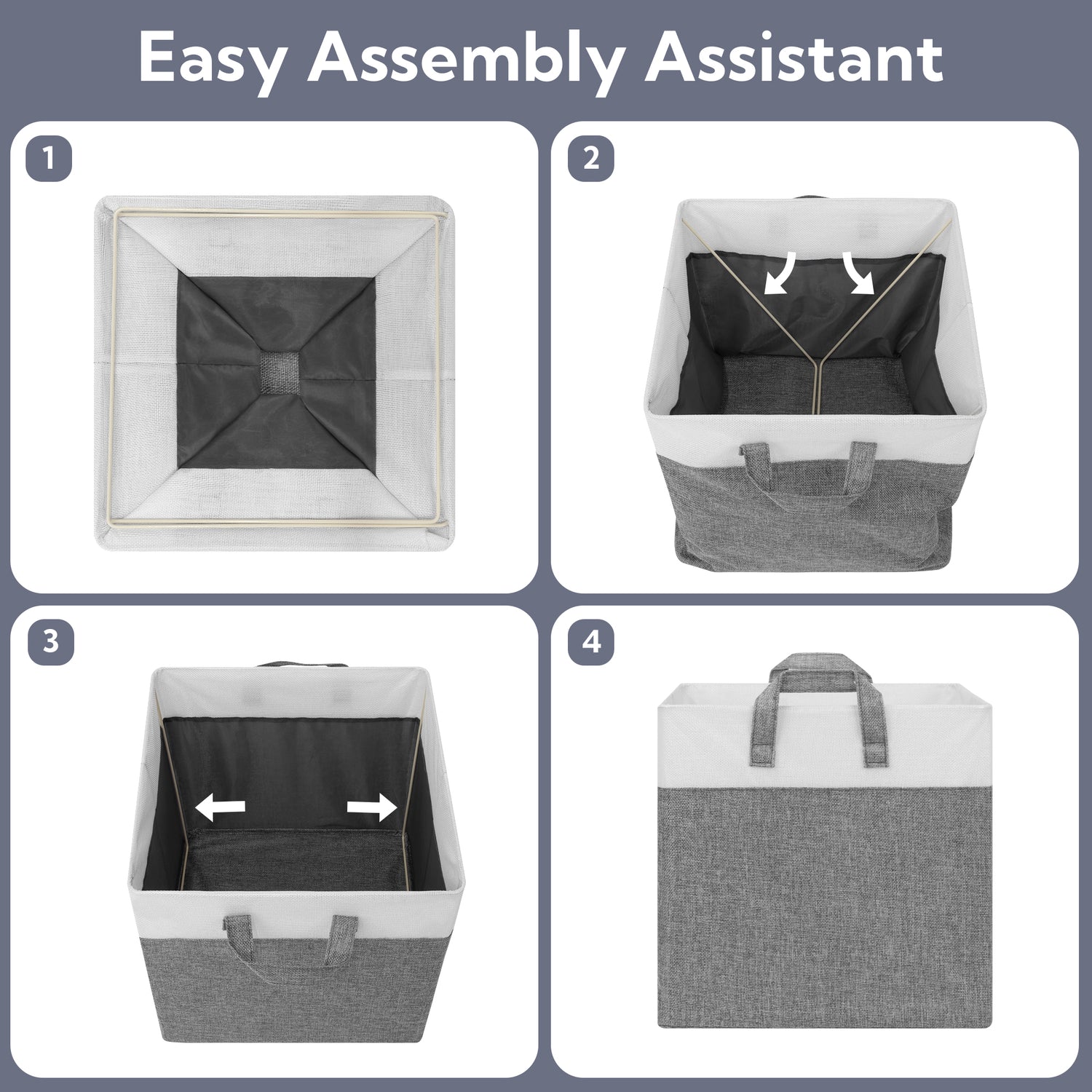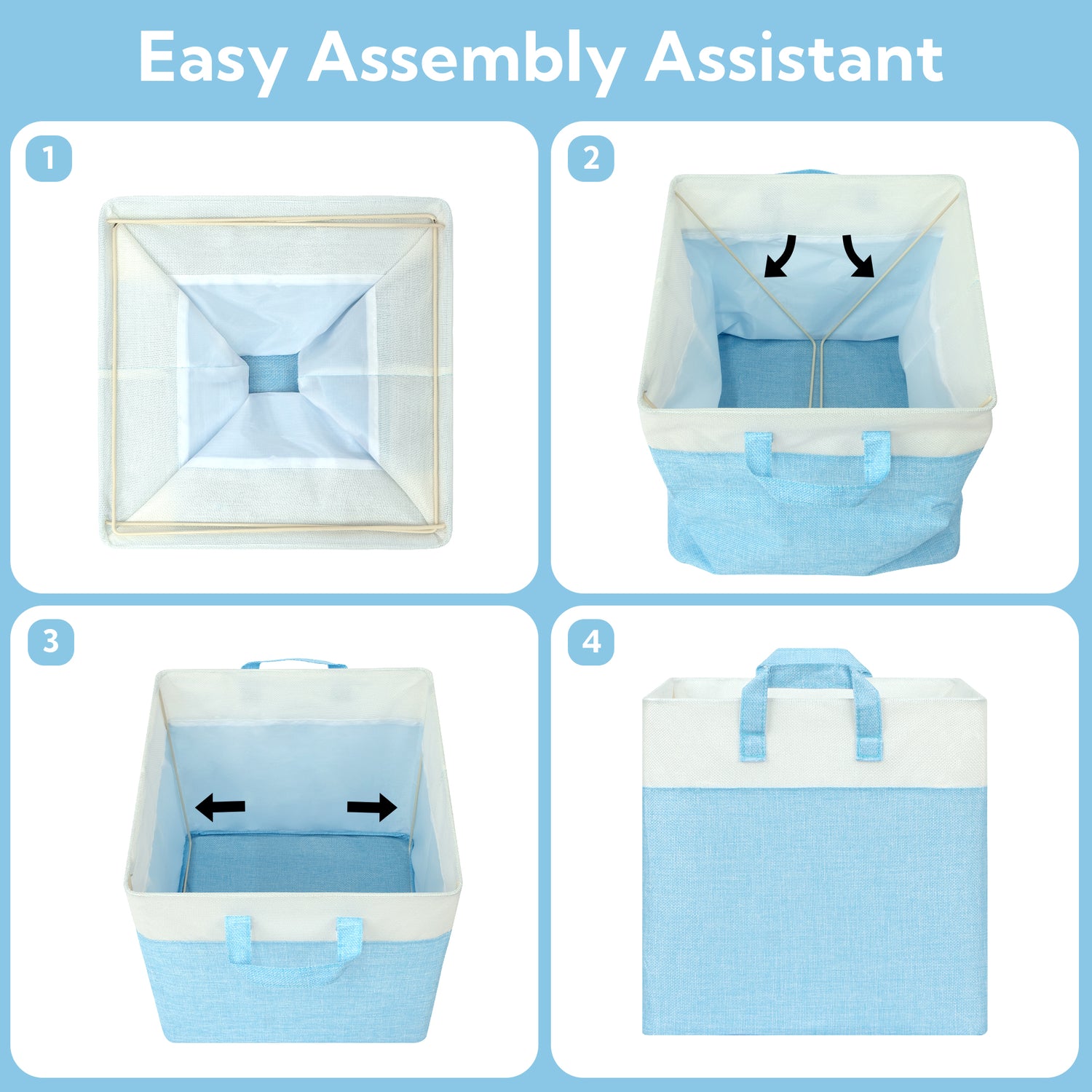 Granny Says Cube Storage Bins come in three versatile sizes—11x11x11 inches, 12x12x12 inches, and 13x13x13 inches—to fit all your storage needs. Each set includes 4 collapsible fabric cubes supported by a sturdy metal frame, preventing deformation and ensuring long-lasting durability.