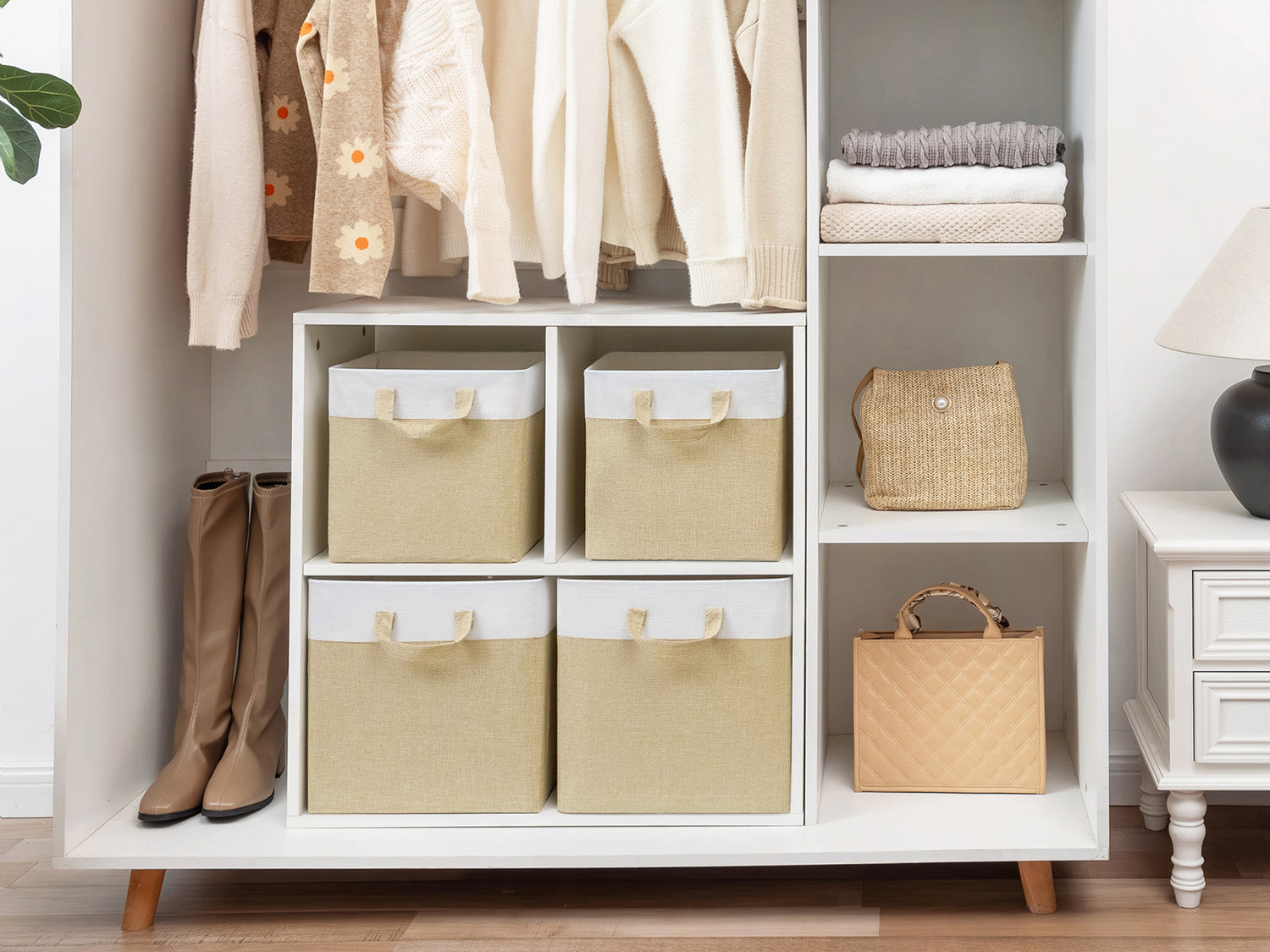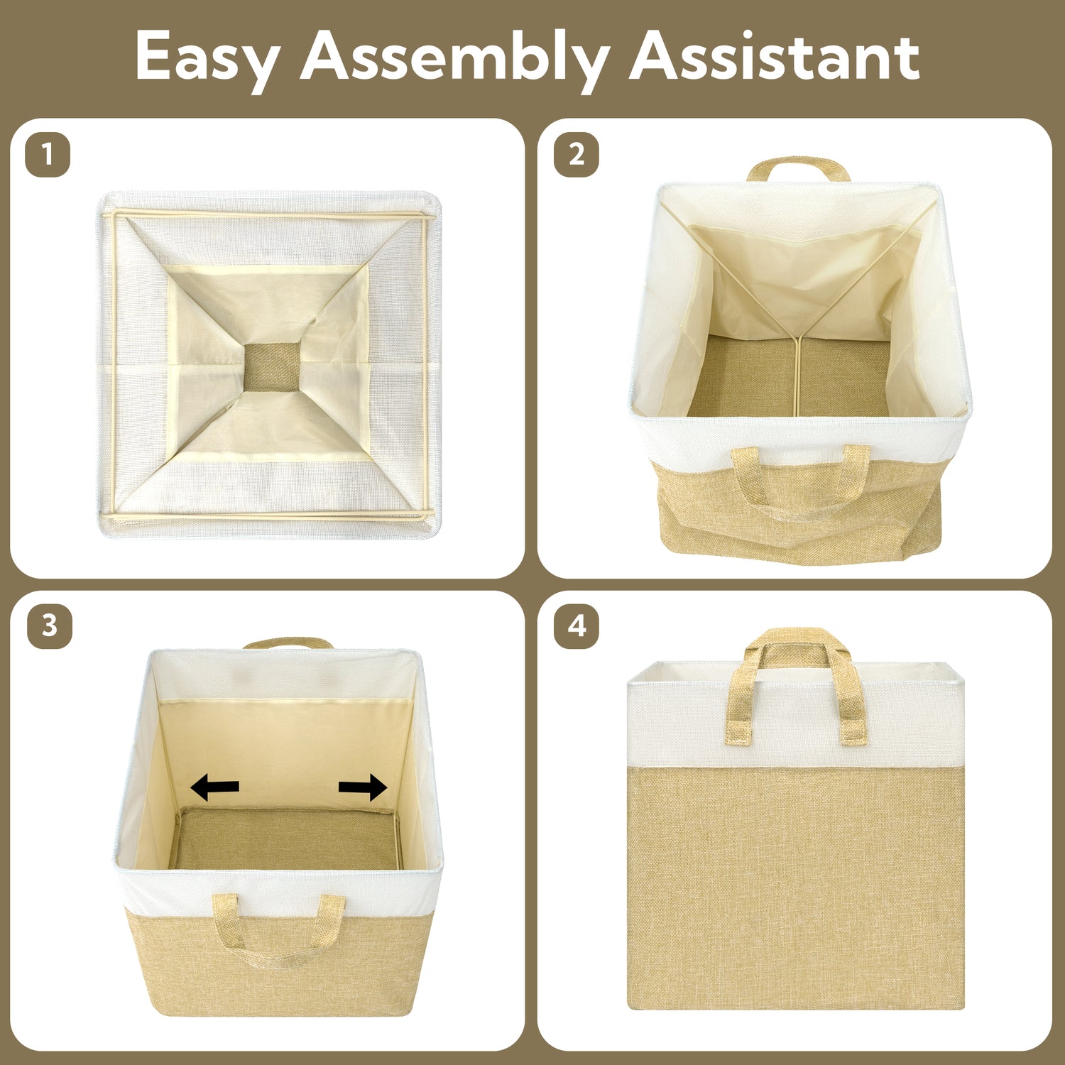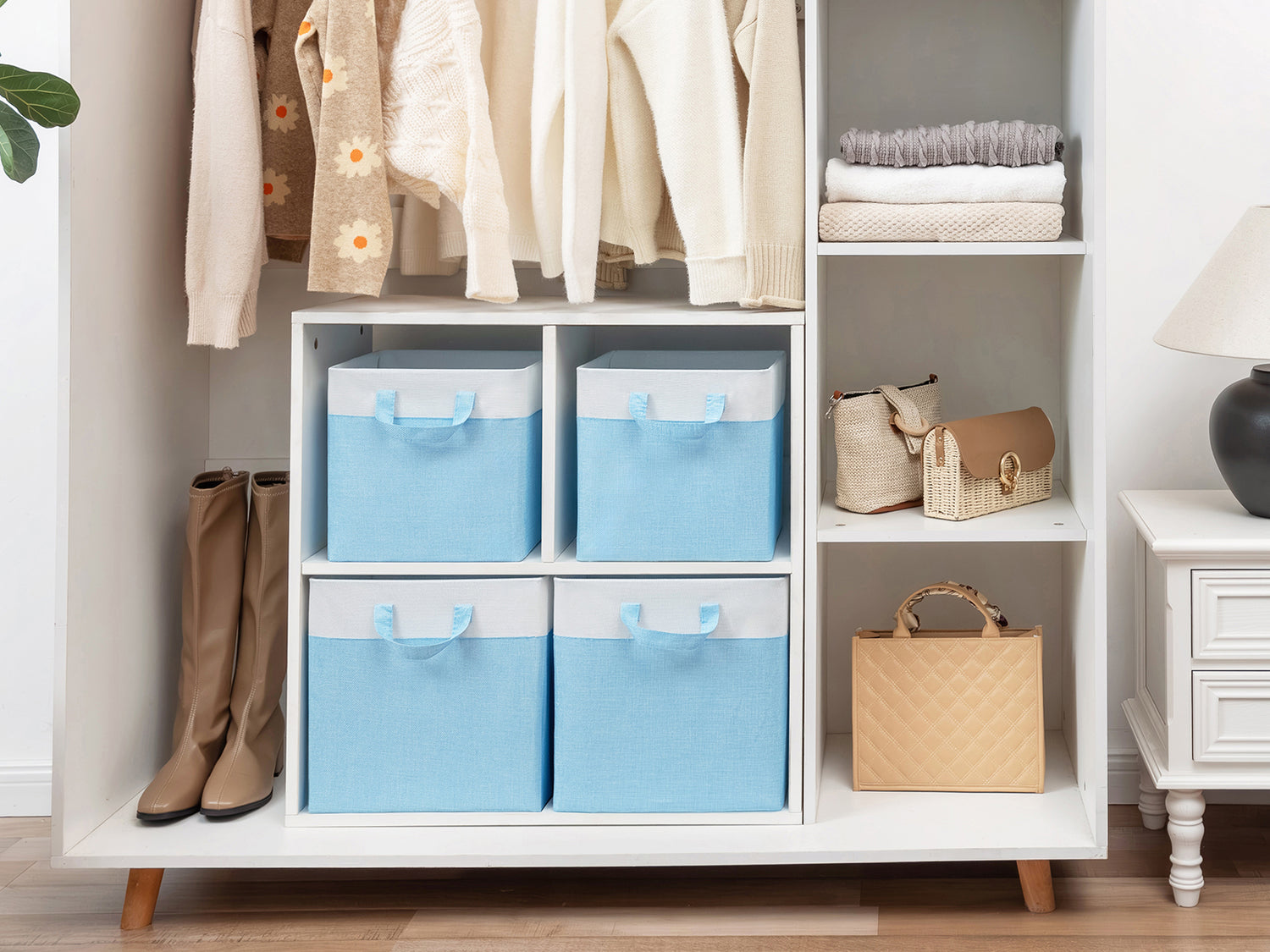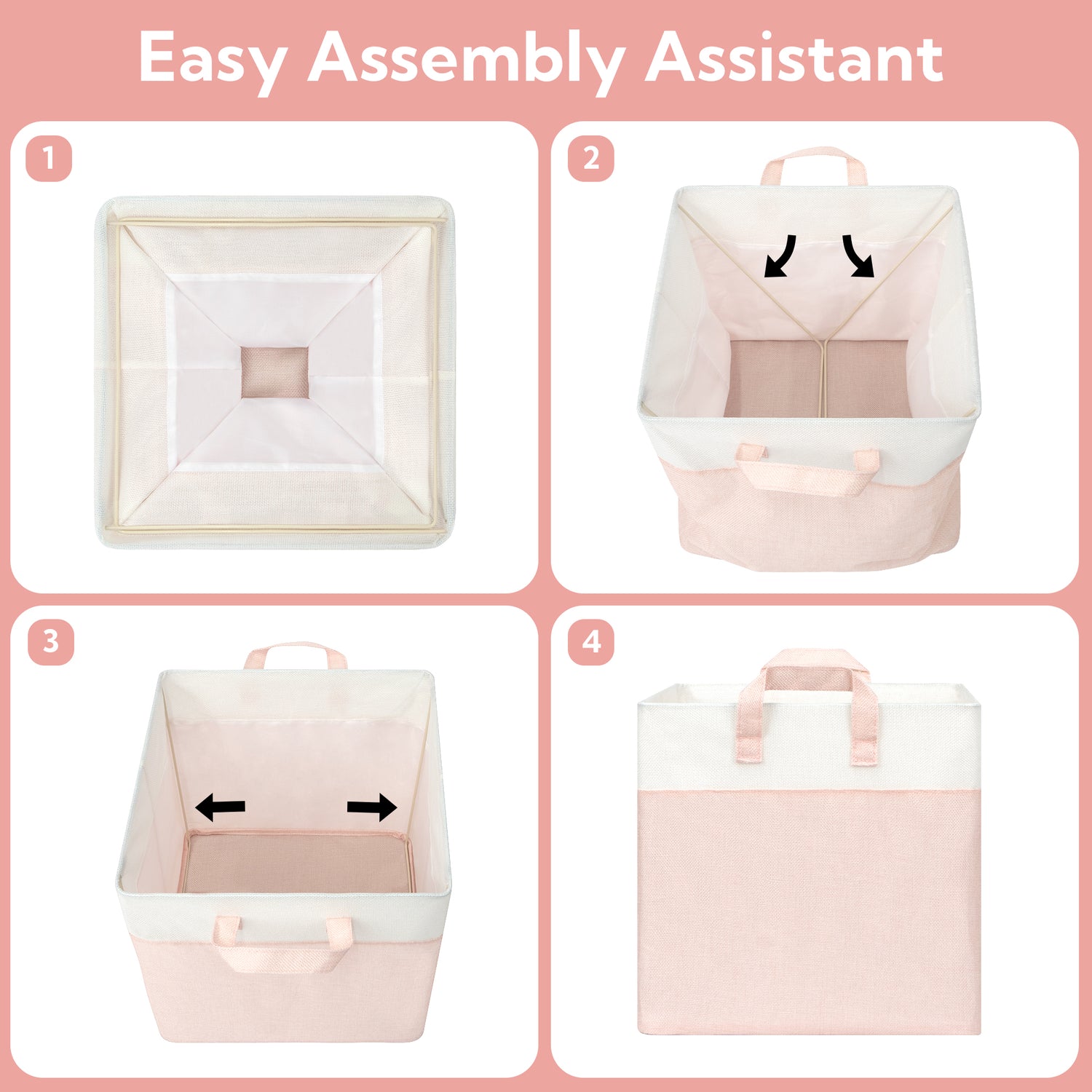 Granny Says Cube Storage Bins come in three versatile sizes—11x11x11 inches, 12x12x12 inches, and 13x13x13 inches—to fit all your storage needs. Each set includes 4 collapsible fabric cubes supported by a sturdy metal frame, preventing deformation and ensuring long-lasting durability.