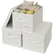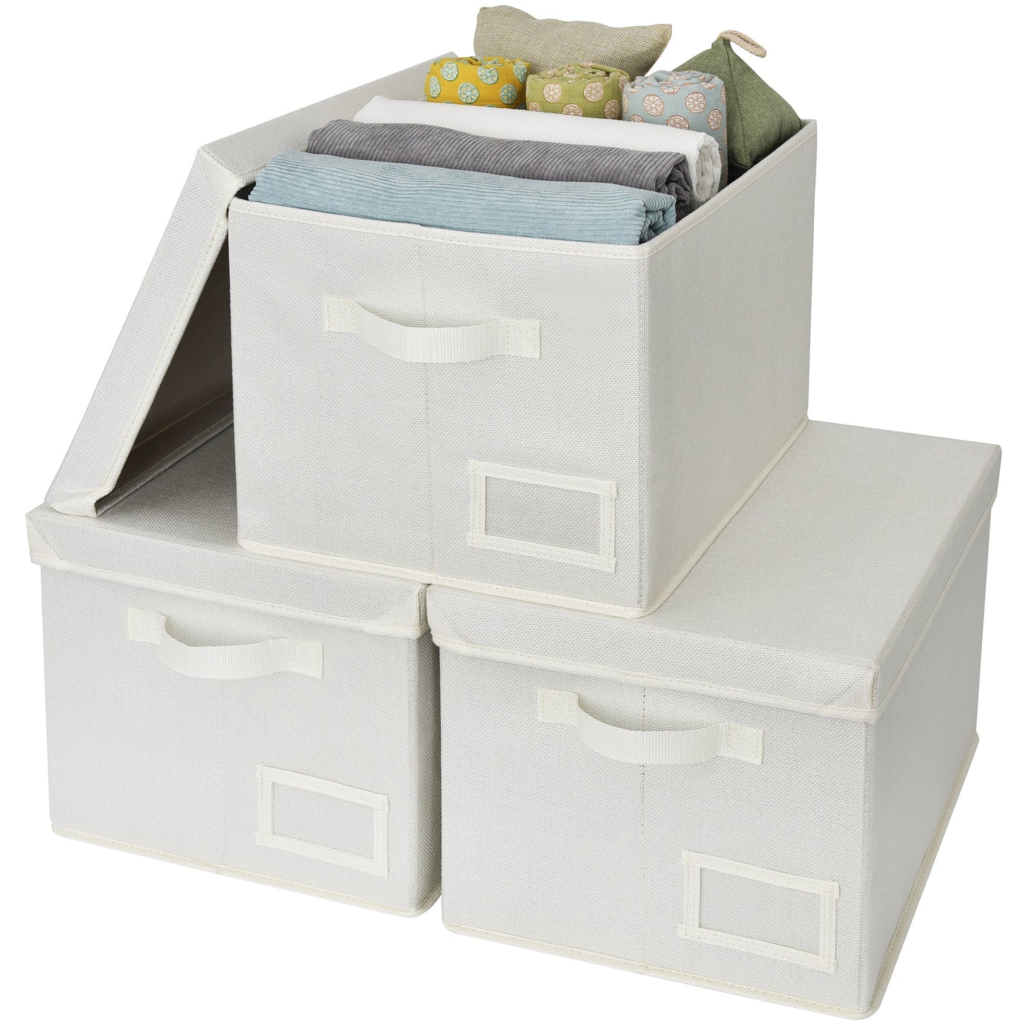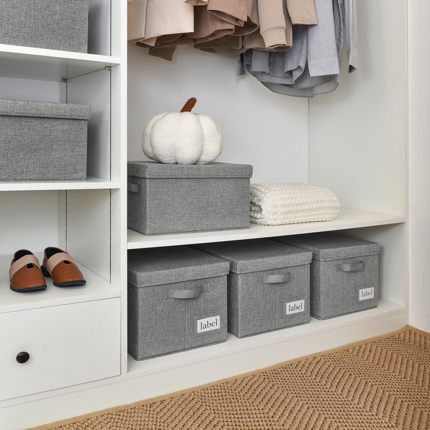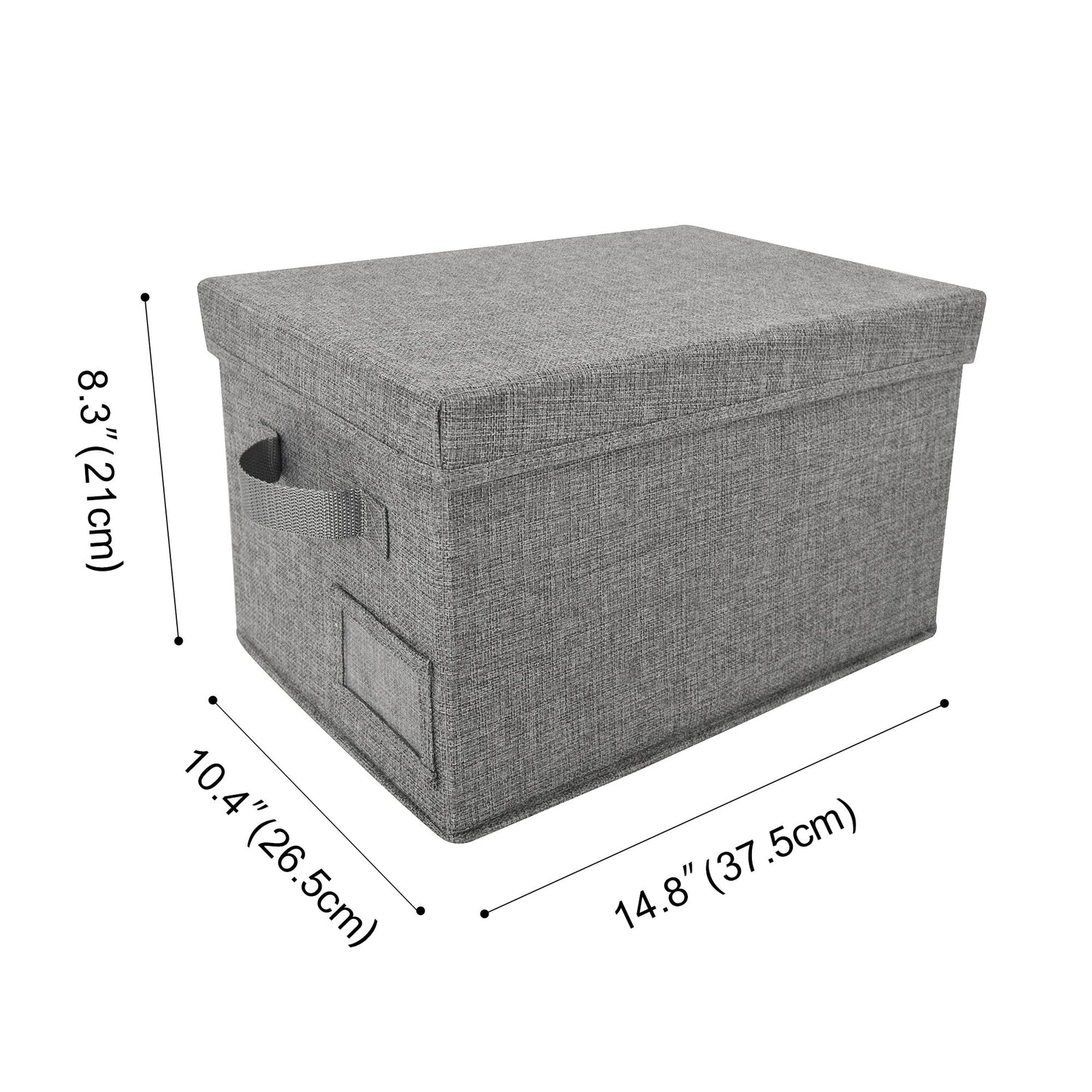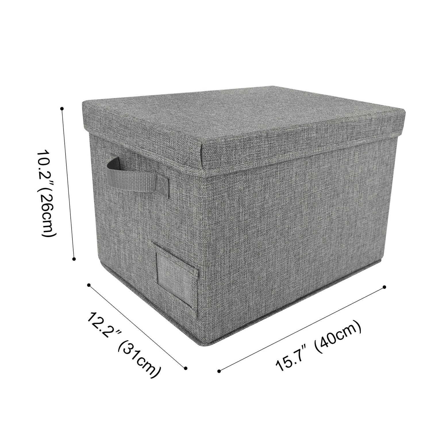 Granny Says Fabric Bins with Lids come in a convenient 3-pack, designed to fit perfectly on most shelves and closets. Made from high-quality imitation linen, these storage baskets offer durability, breathability, and an odor-free, refined appearance that complements any room.