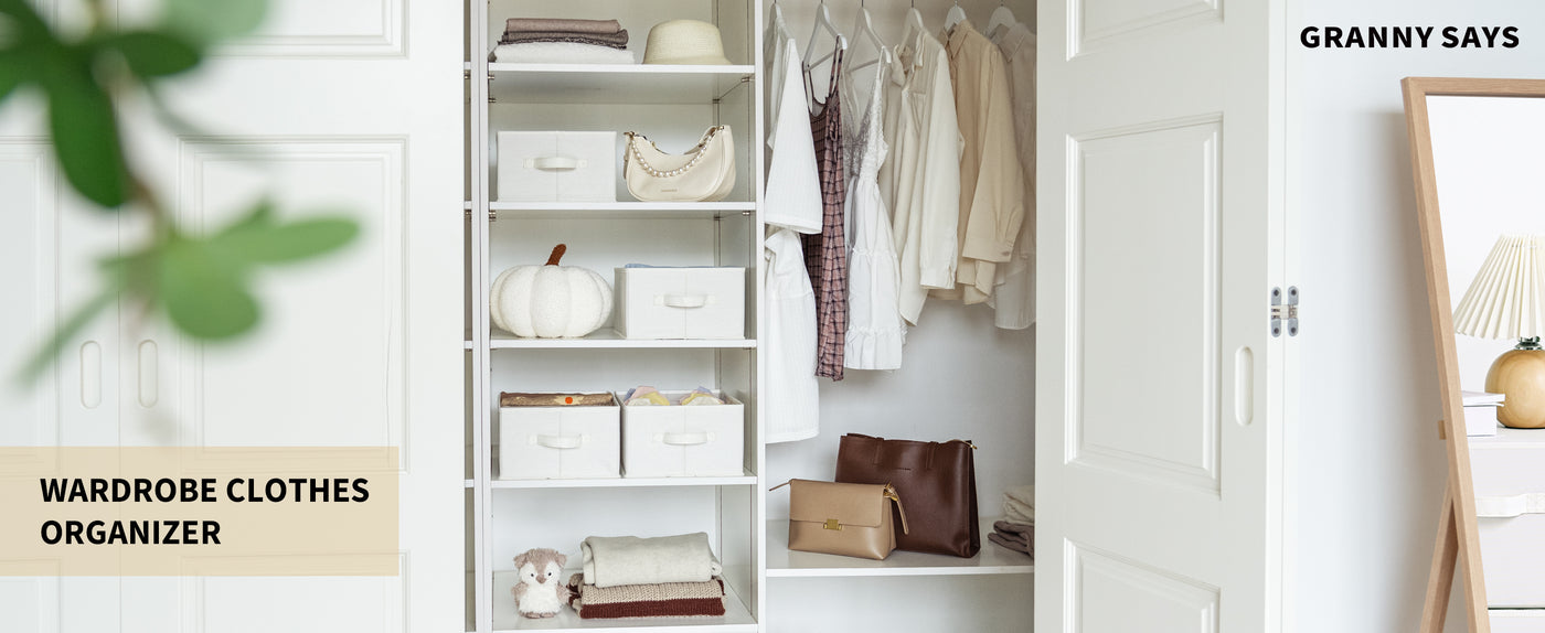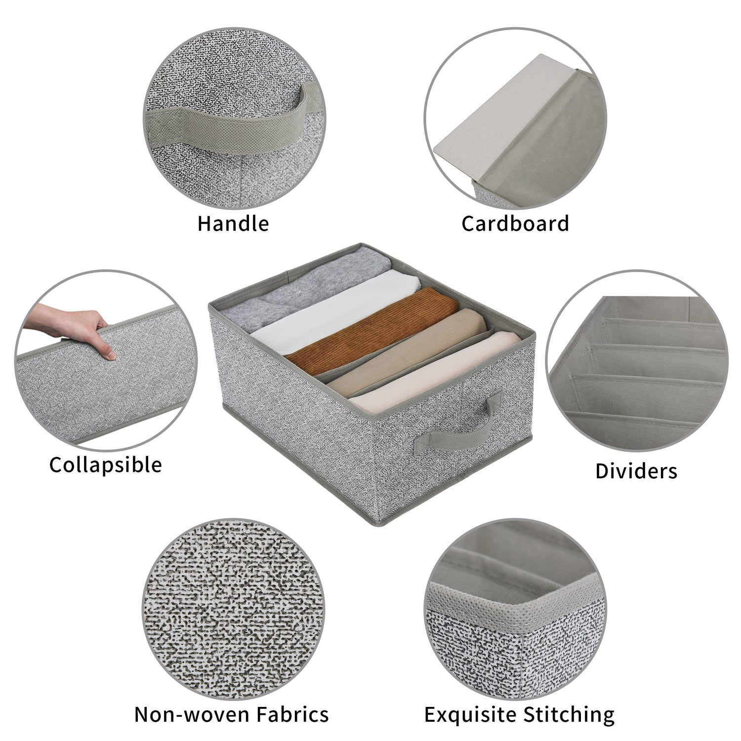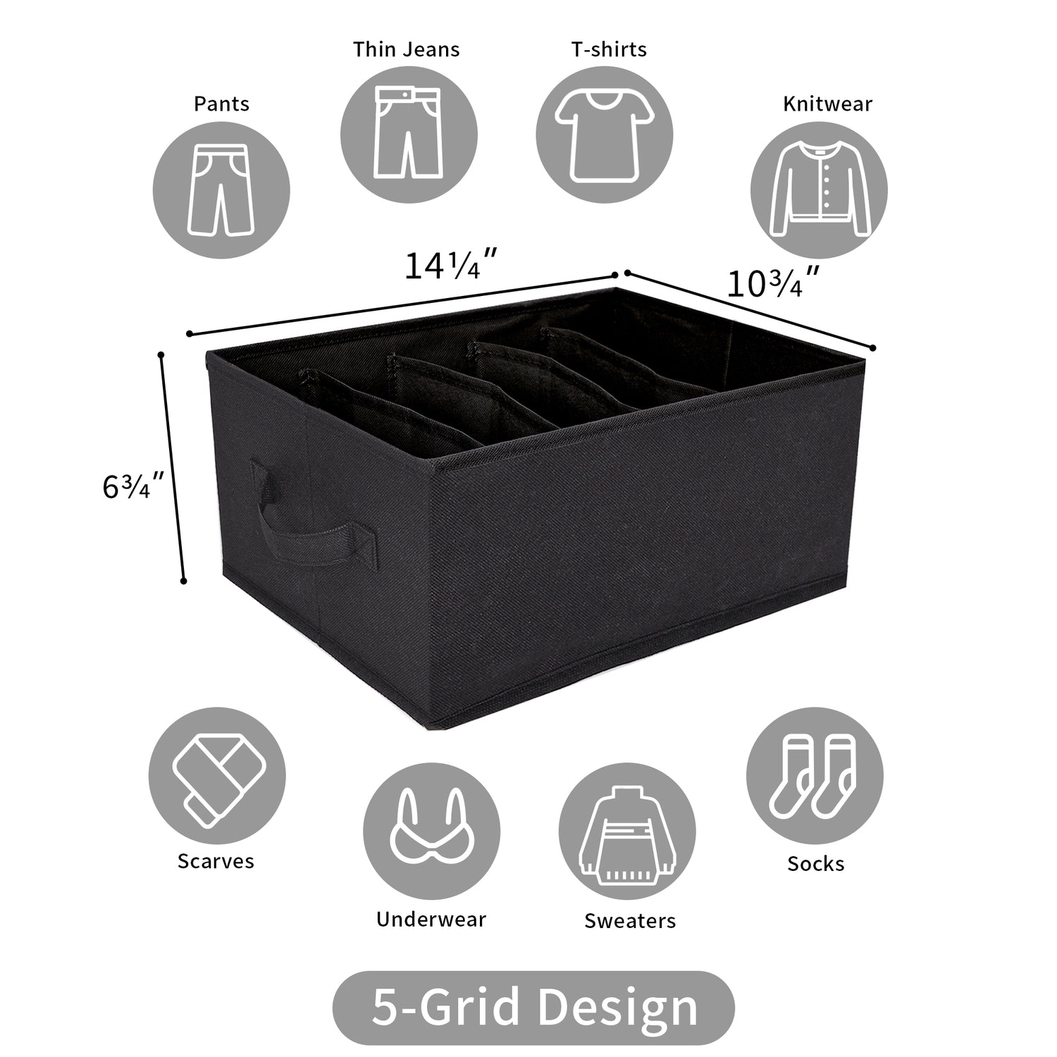 GRANNY SAYS wardrobe clothes organizer offers a smart way to declutter your closet and drawers. Each organizer measures 14 ¼" L x 10 ¾" W x 6 ¾" H and features five spacious grids, ideal for neatly storing pants, jeans, leggings, T-shirts, sweaters, or scarves.
