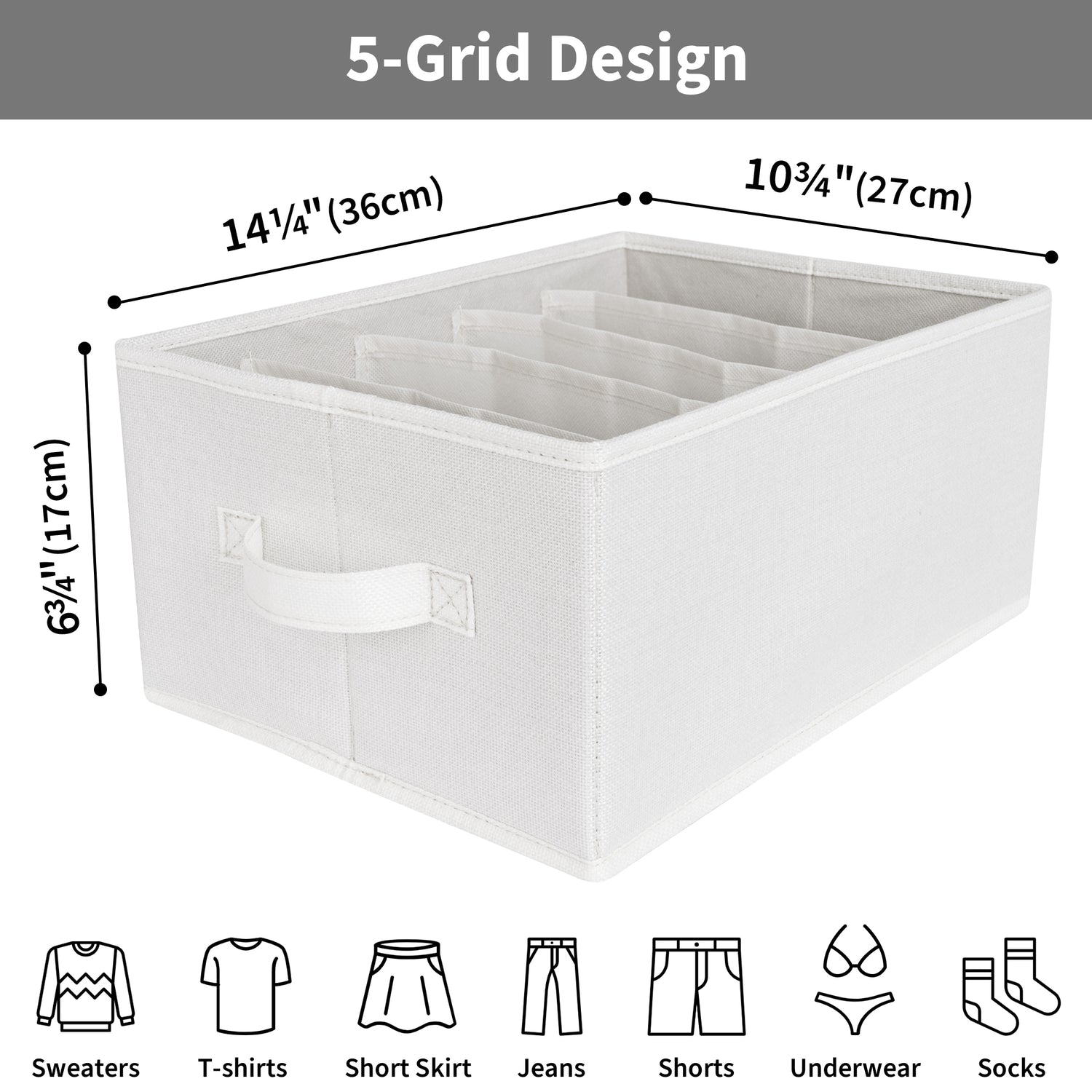 Maximize your closet space with the GRANNY SAYS 6-Pack Pants & Jeans Organizer. Each organizer measures 14 ¼" L x 10 ¾" W x 6 ¾" H and features five roomy grids, ideal for sorting pants, jeans, sweaters, T-shirts, and accessories.