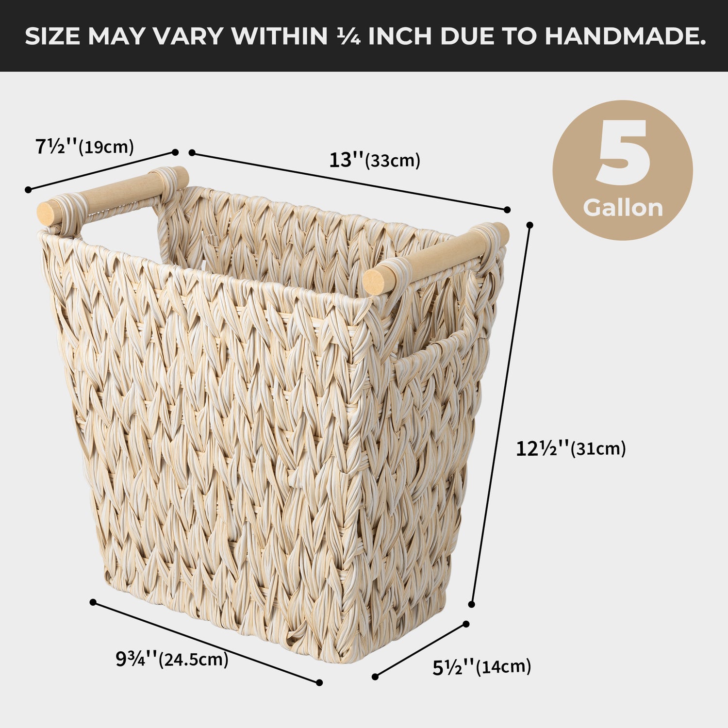 Woven Wicker Trash Basket with Handles, 2 Pack
