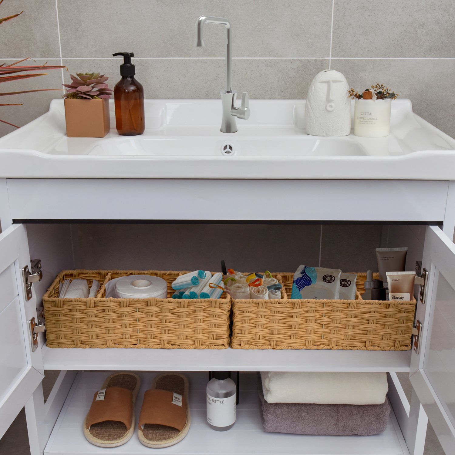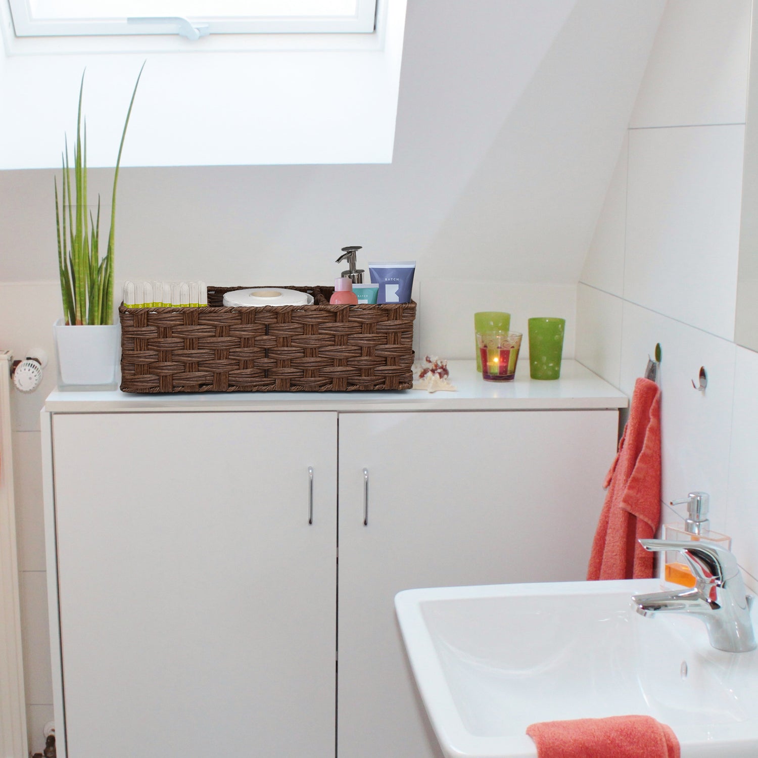 - Washable and waterproof, it's ideal for extra storage and bathroom decor.