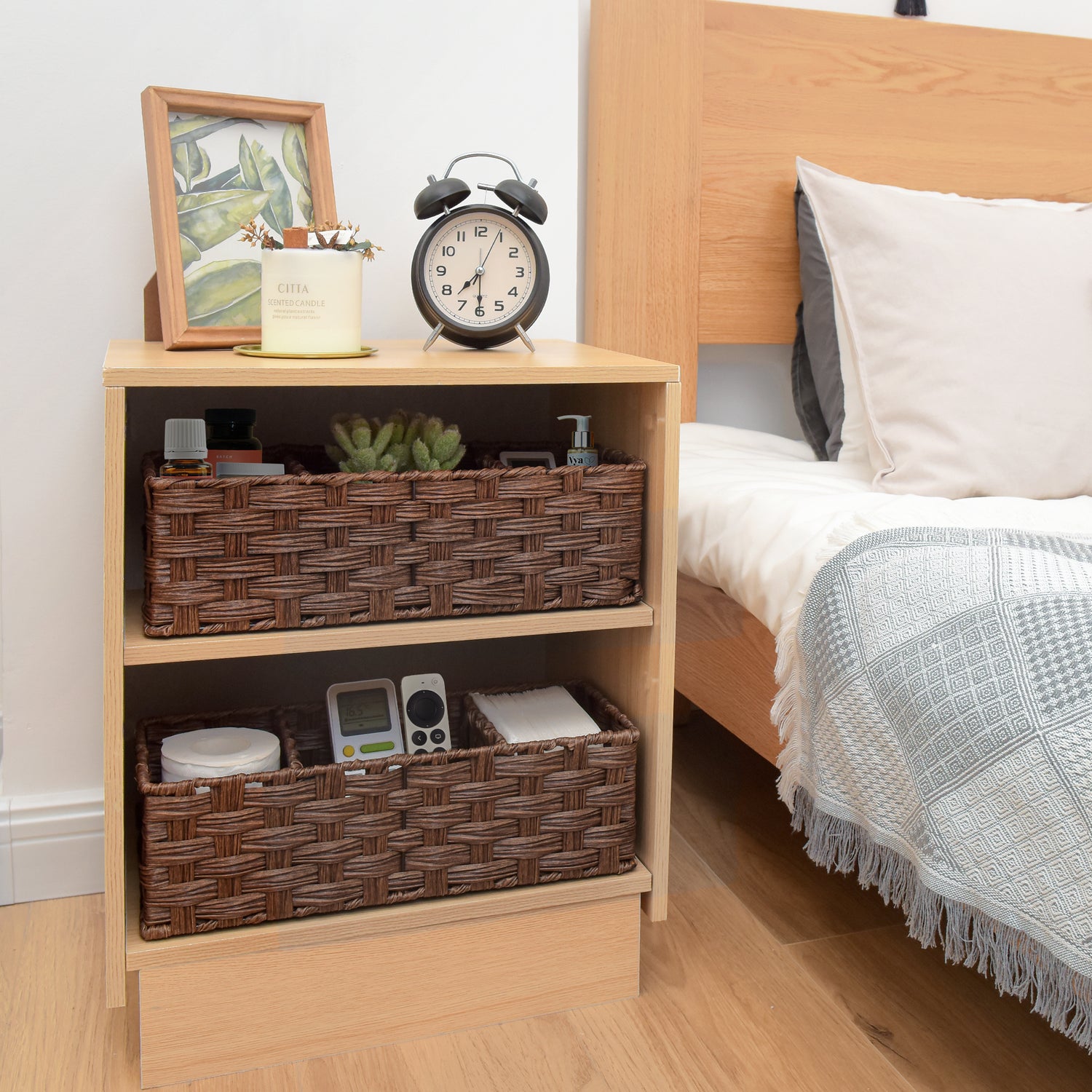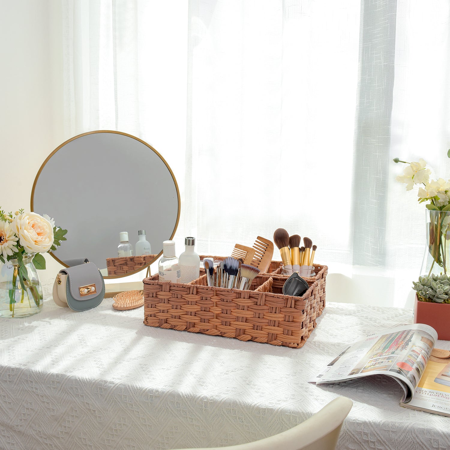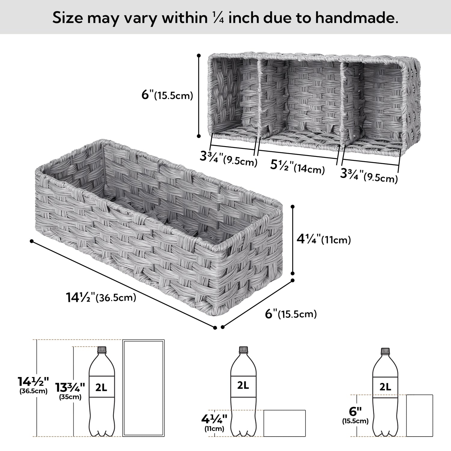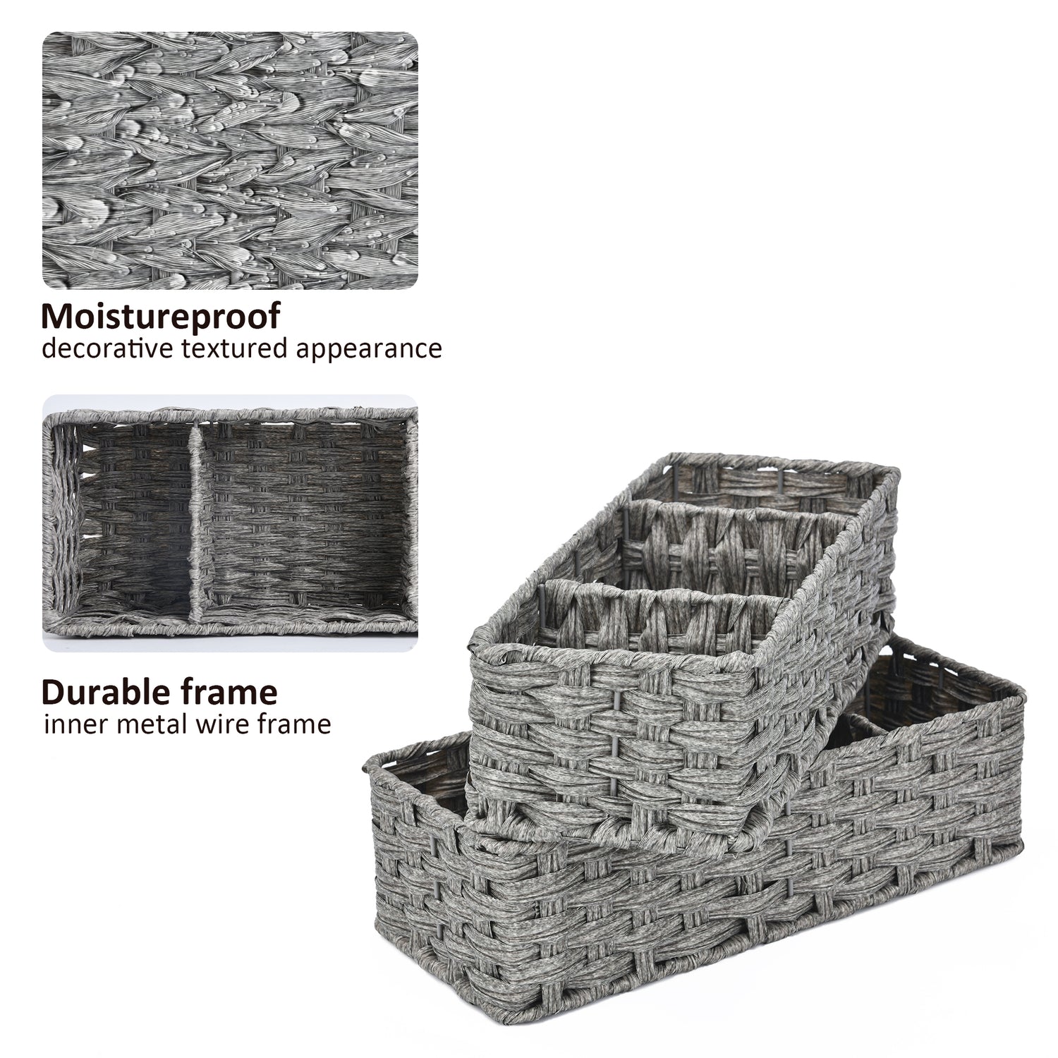 3-Section Handwoven Wicker Basket, 2 Pack