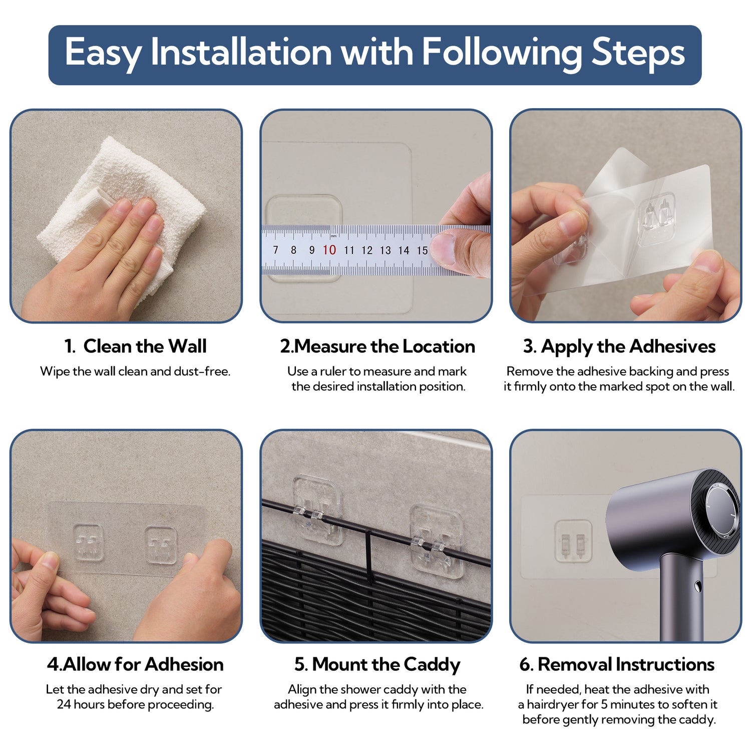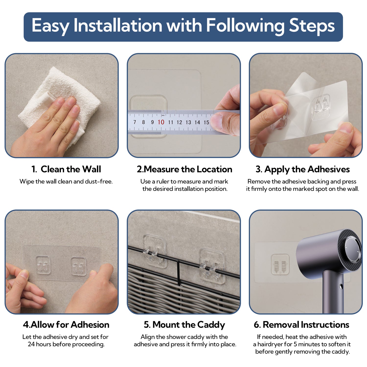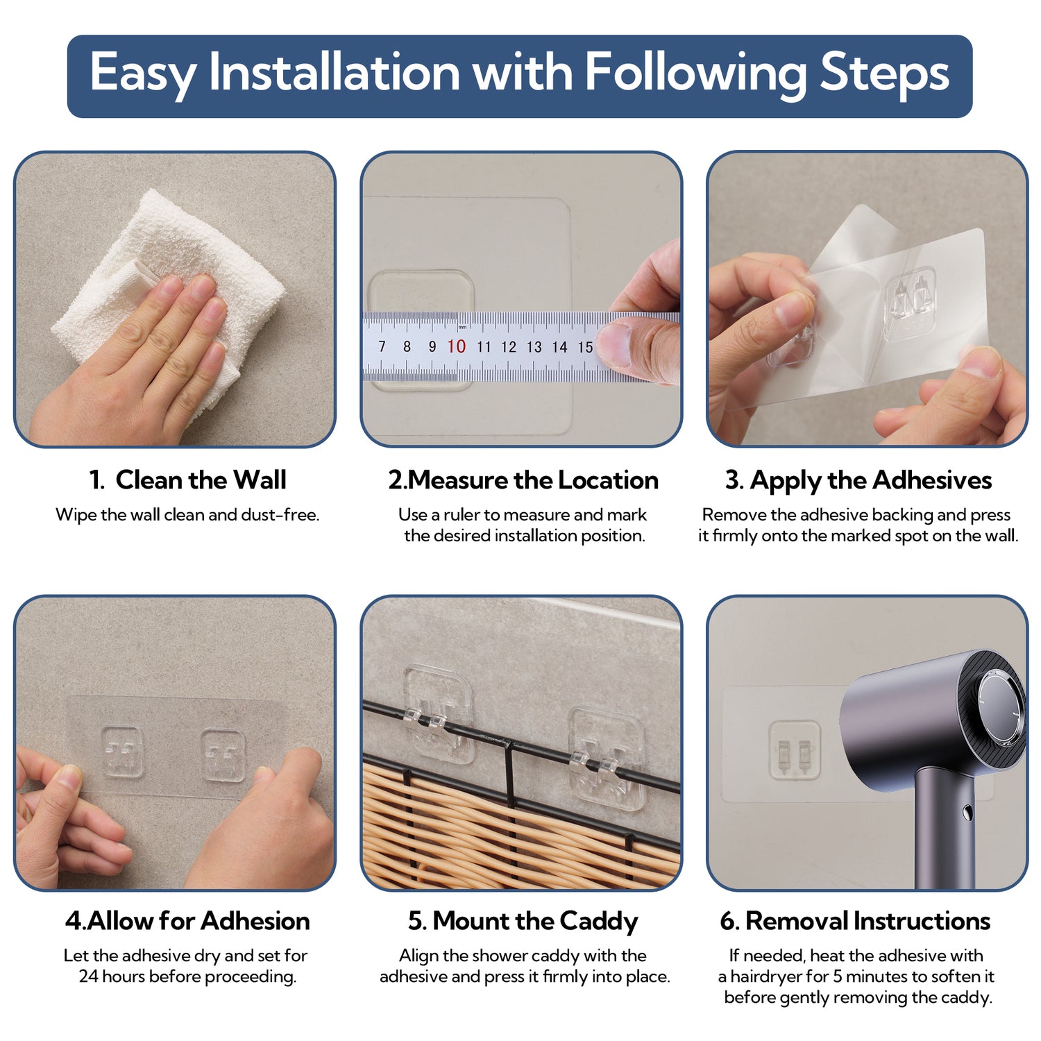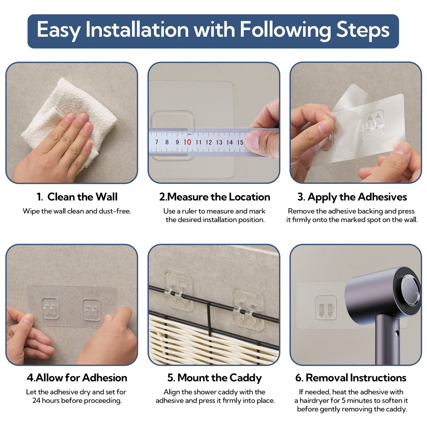• 4 adhesives support up to 13 lbs, ensuring stability without drilling.