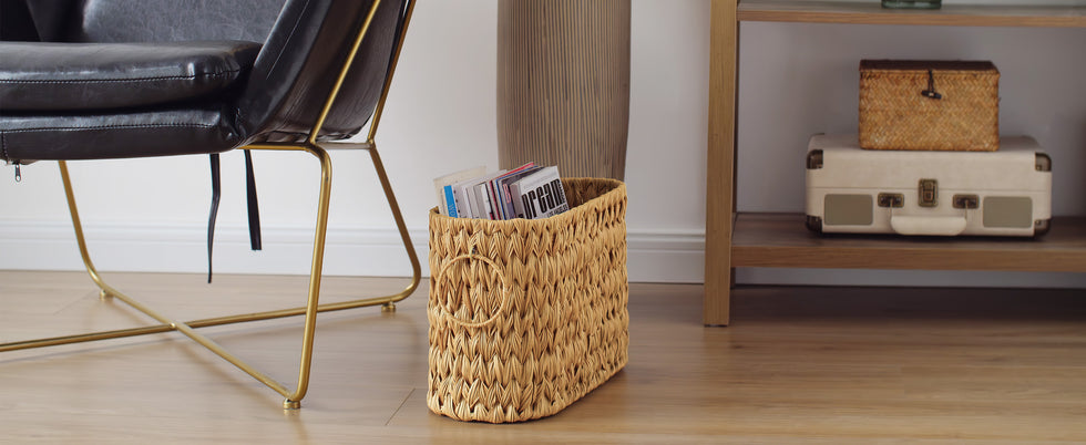 - Rounded corners optimize organization for toilet paper, towels, and magazines in any room.