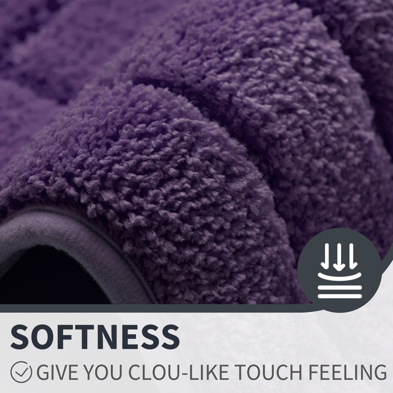 - Cloud-like, cut-pile surface provides warmth and comfort for your feet.
