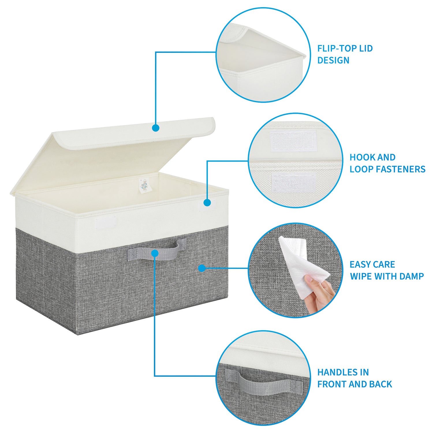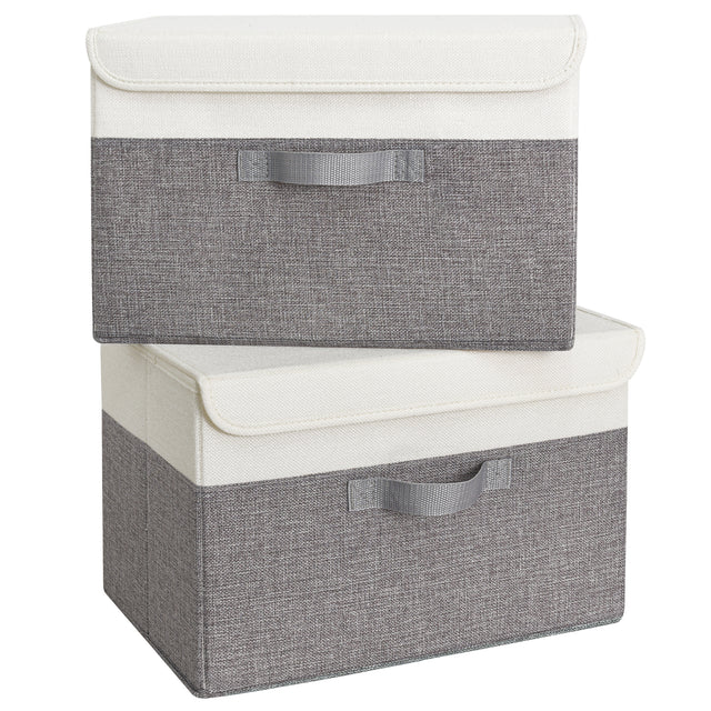 🍀Shelf Storage Bins with Lids, Pack of 2 - White & Grey is backordered and will ship as soon as it is back in stock.