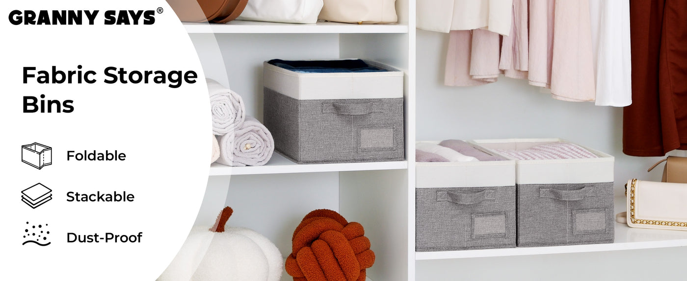 Granny Says fabric storage bins are made from breathable, eco-friendly linen-like fabric with reinforced sides and sturdy bases for long-lasting durability. Featuring ergonomic handles and label windows, these foldable bins provide easy access and efficient organization. Ideal for closets, shelves, bedrooms, offices, and more, perfect for storing clothes, toys, books, towels, and everyday essentials.