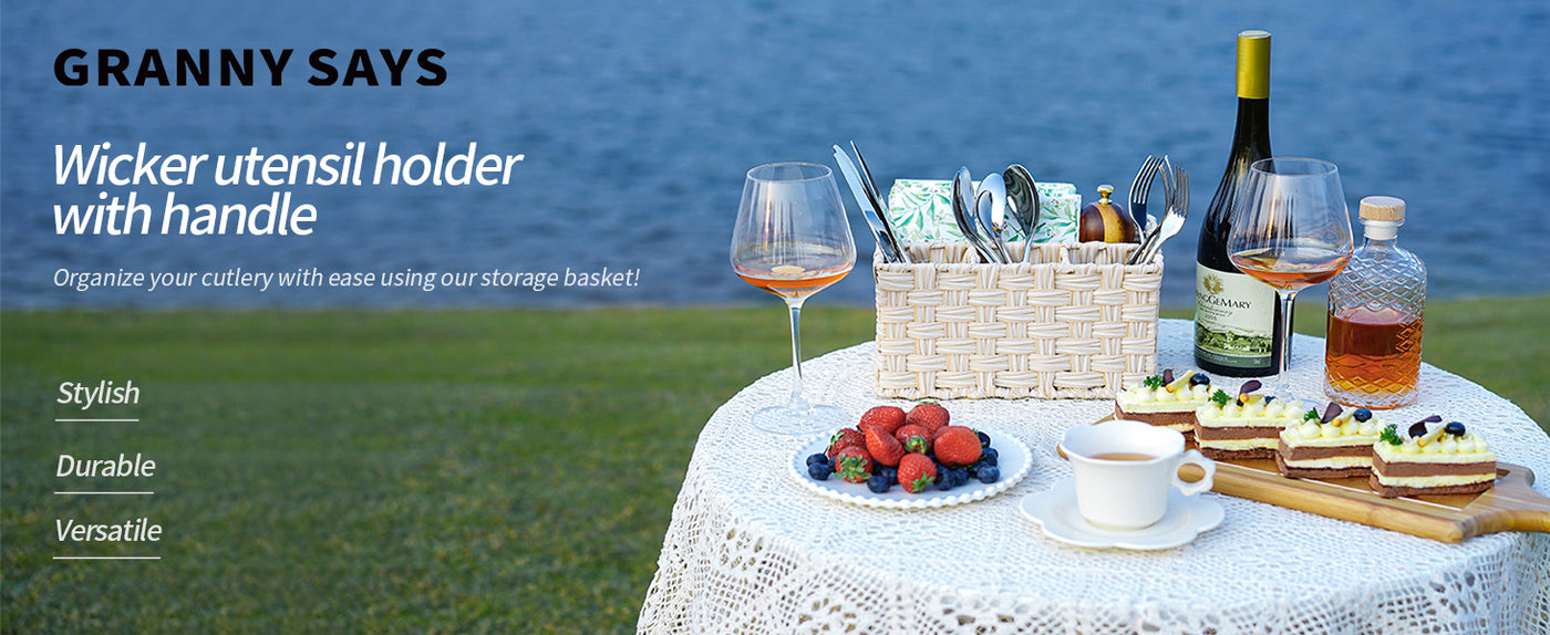Wicker Utensil Holder Organizer with Handle - Butter Milk is backordered and will ship as soon as it is back in stock.