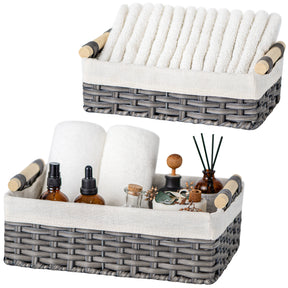 Lined Wicker Baskets with Wooden Handles, 2 in 1 Pack