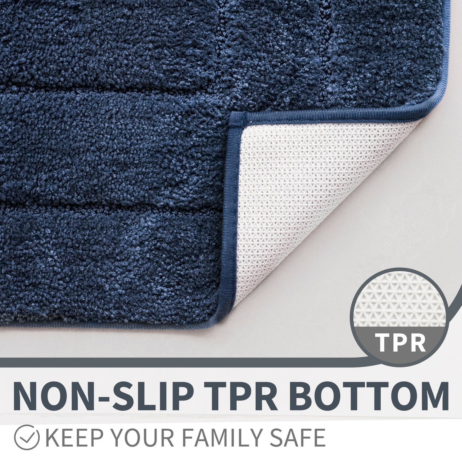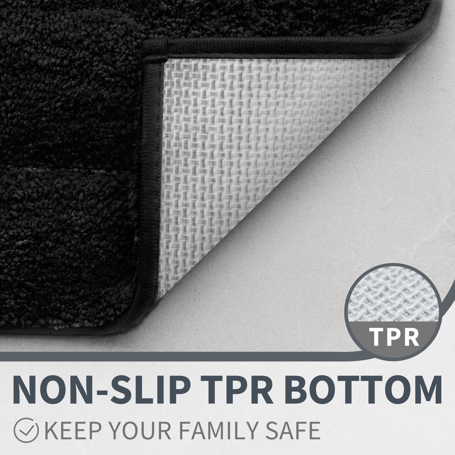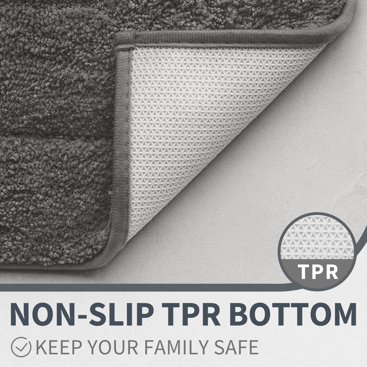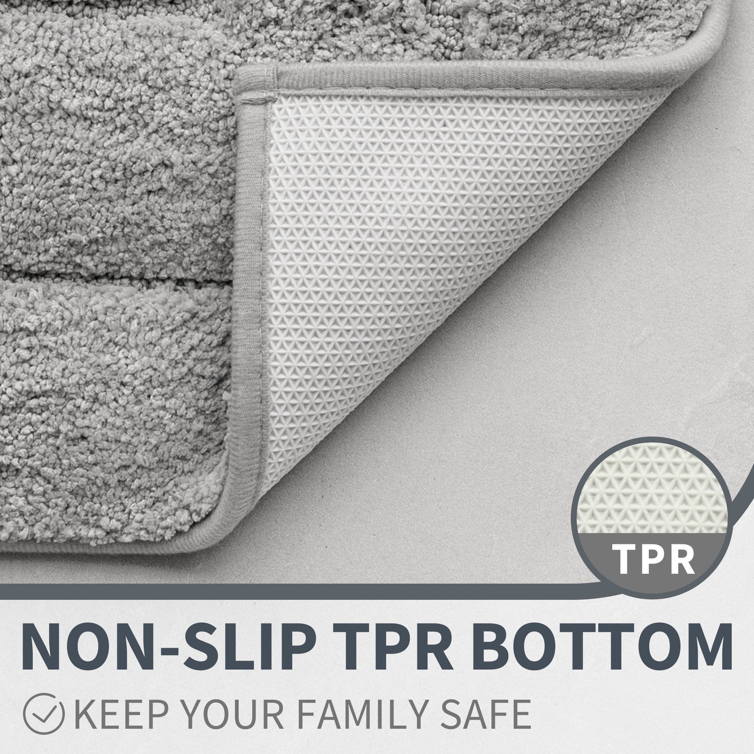 - Upgrade your space with these super soft, non-slip bathroom rugs and bath mats. Made from thick, absorbent microfiber, they quickly soak up water to keep your bathroom floors dry and clean. The durable TPR backing prevents slipping, making them perfect for use outside the shower, tub, or sink.