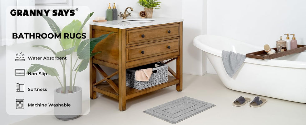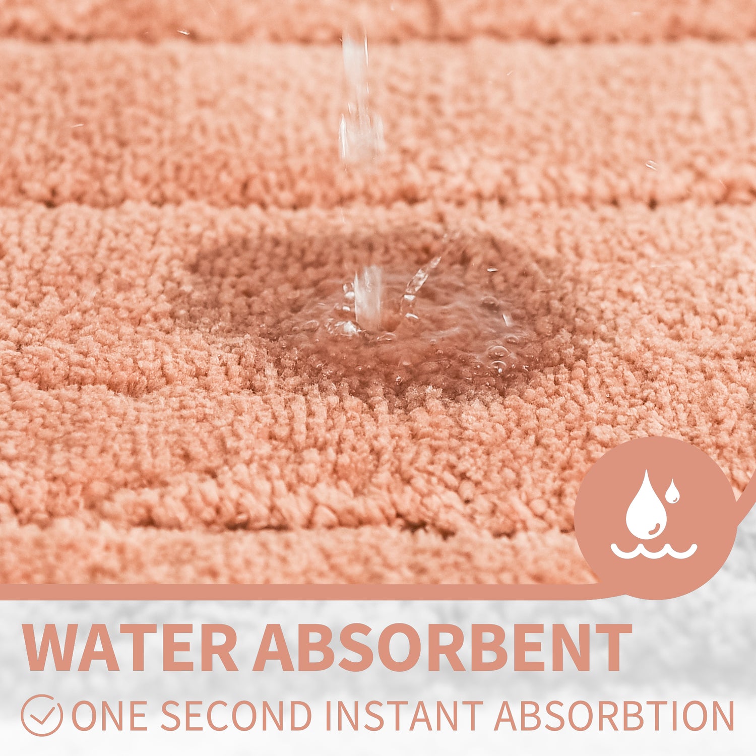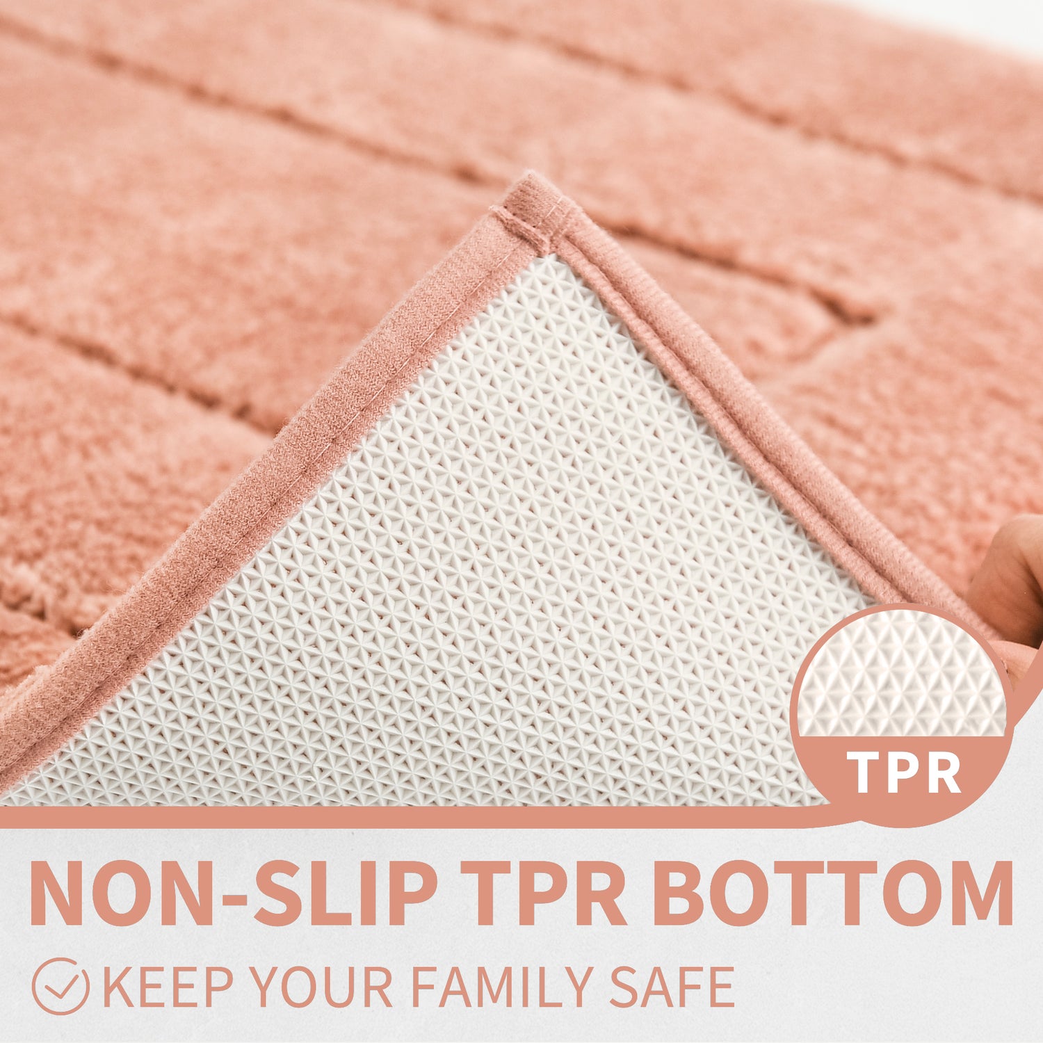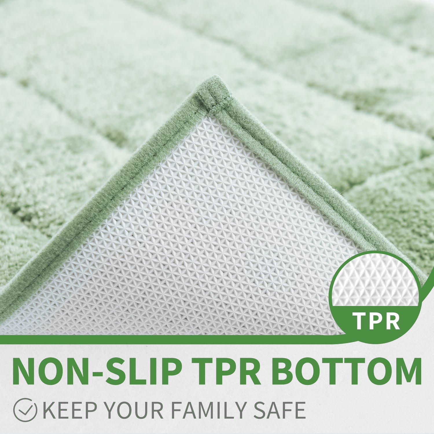 - Upgrade your space with these super soft, non-slip bathroom rugs and bath mats. Made from thick, absorbent microfiber, they quickly soak up water to keep your bathroom floors dry and clean. The durable TPR backing prevents slipping, making them perfect for use outside the shower, tub, or sink.