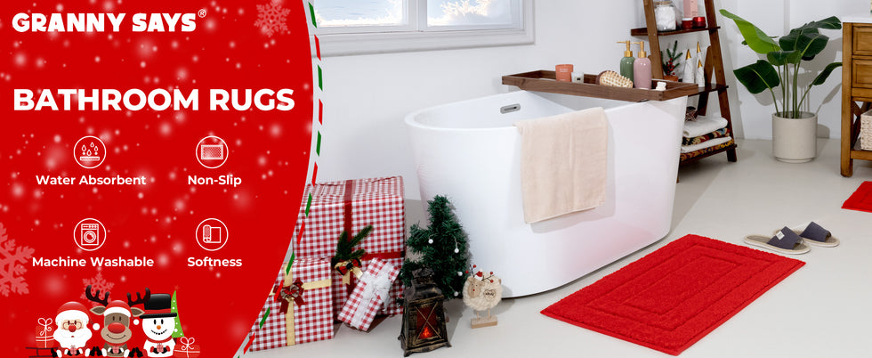 Upgrade your bathroom with our red and green microfiber bathroom rugs, crafted from plush, ultra-soft microfiber for superior water absorption. These bath mats quickly soak up moisture to keep your floors dry and safe.
