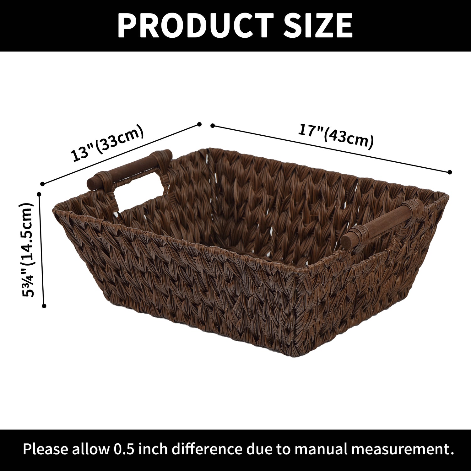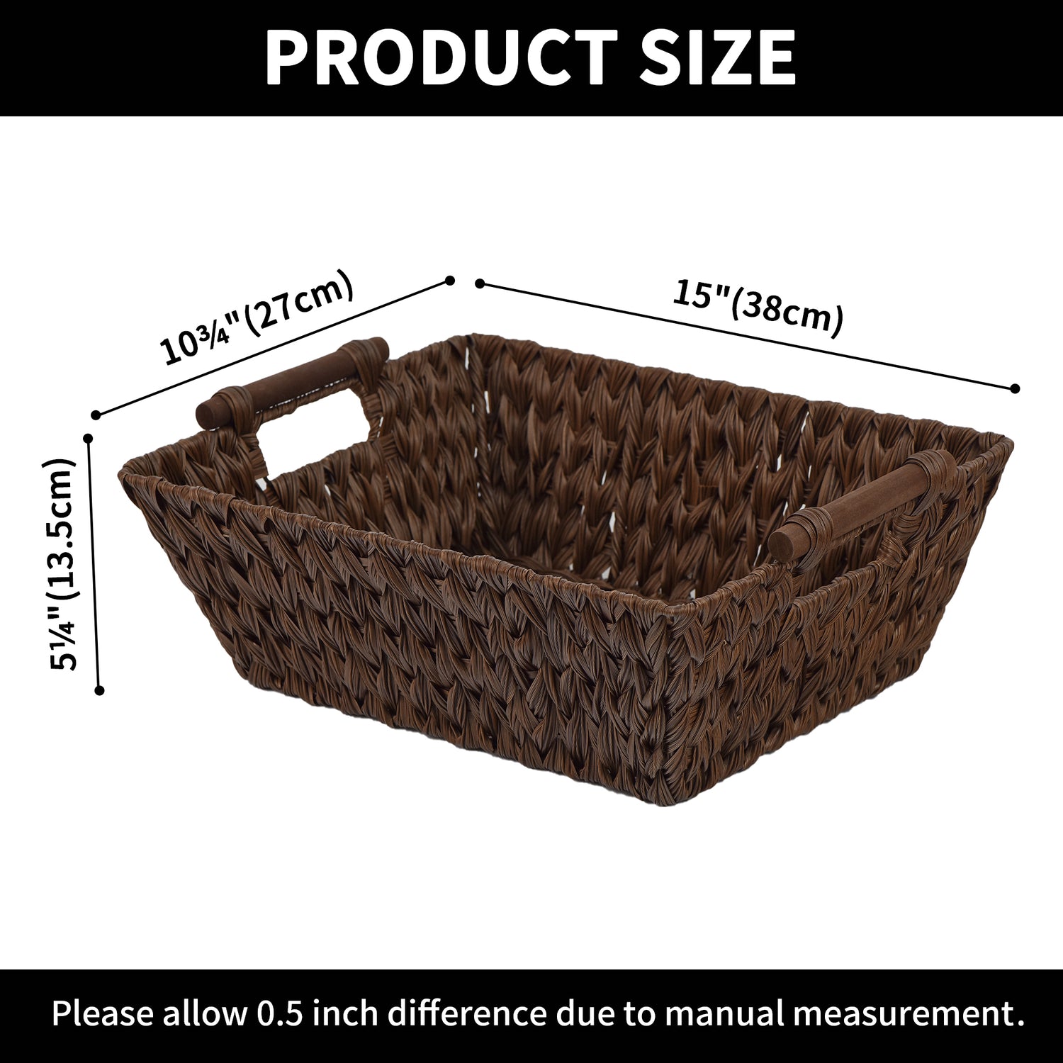 Trapezoidal Wicker Baskets with Wooden Handles for 3 Size - Brown / Large is backordered and will ship as soon as it is back in stock.