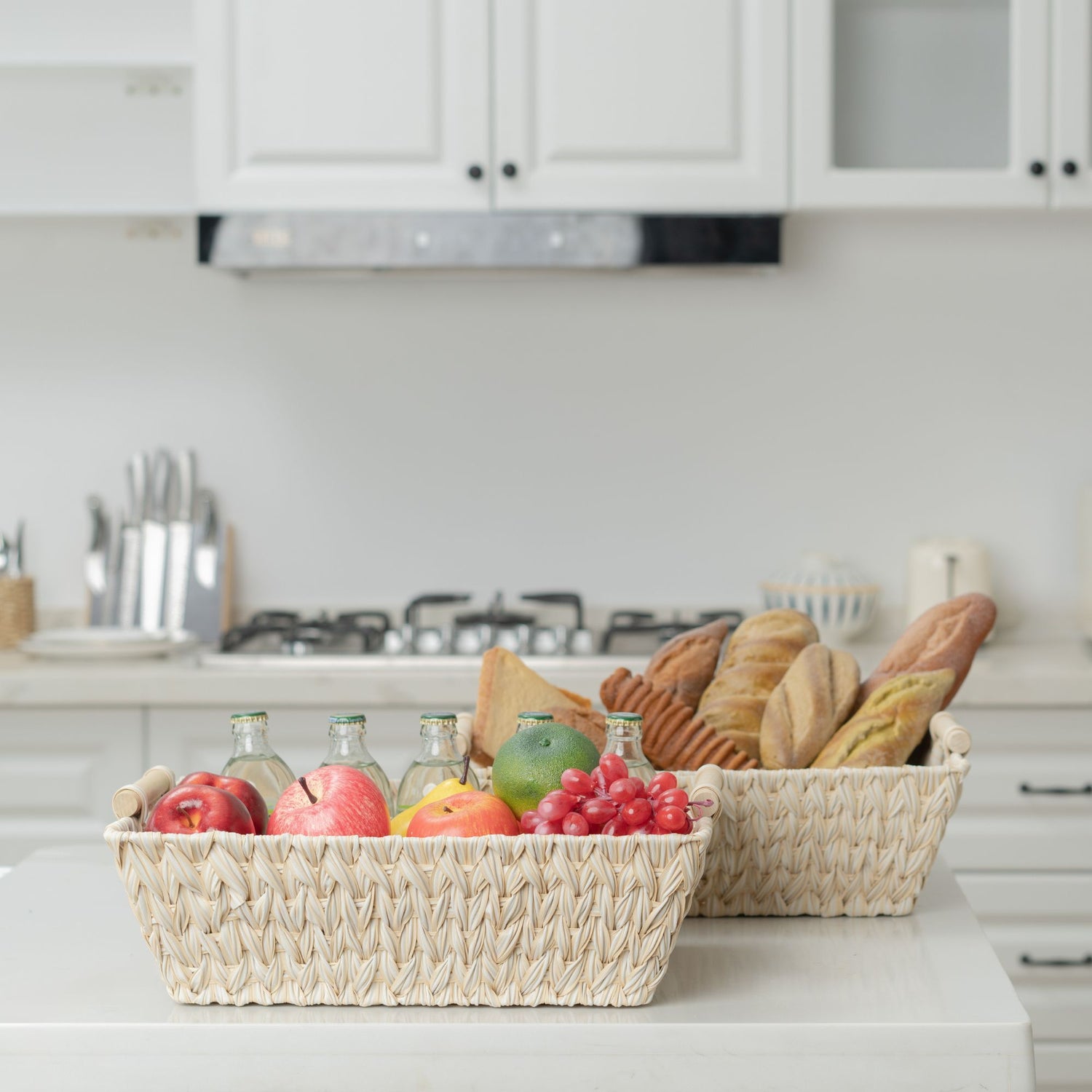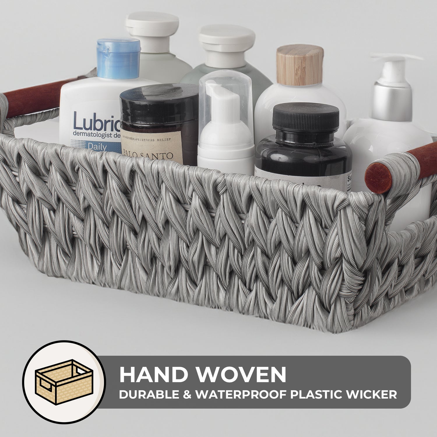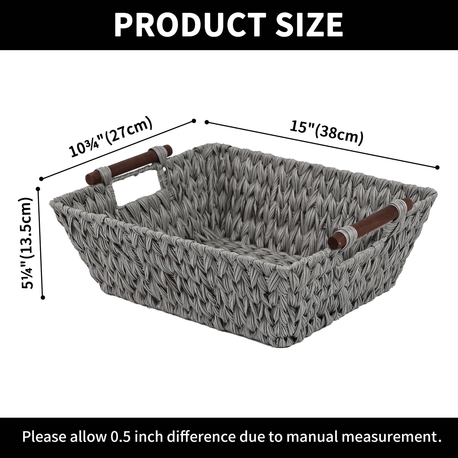 Trapezoidal Wicker Baskets with Wooden Handles for 3 Size