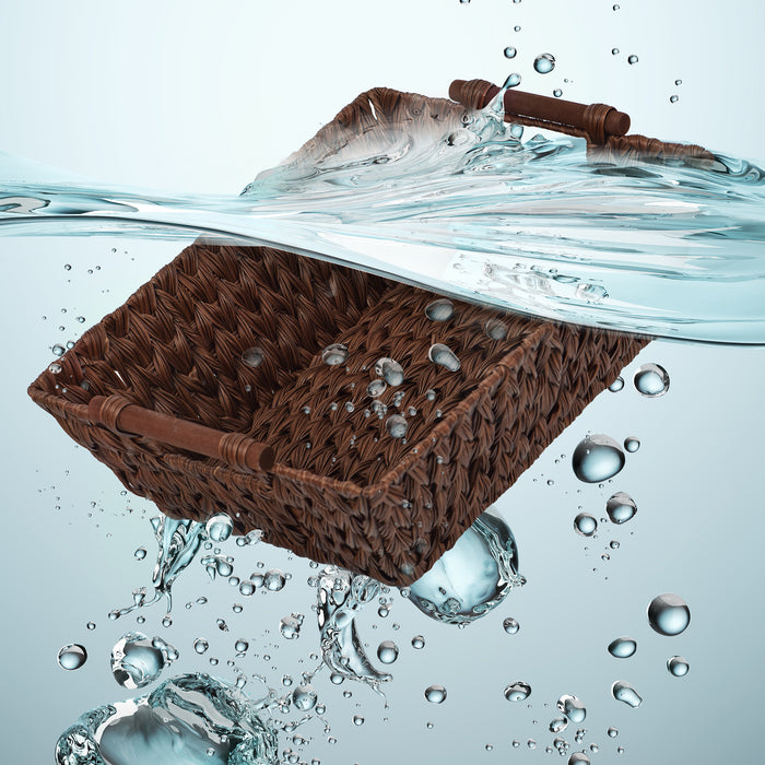 - The moisture-proof plastic wicker baskets can be flushed with water to clean.
