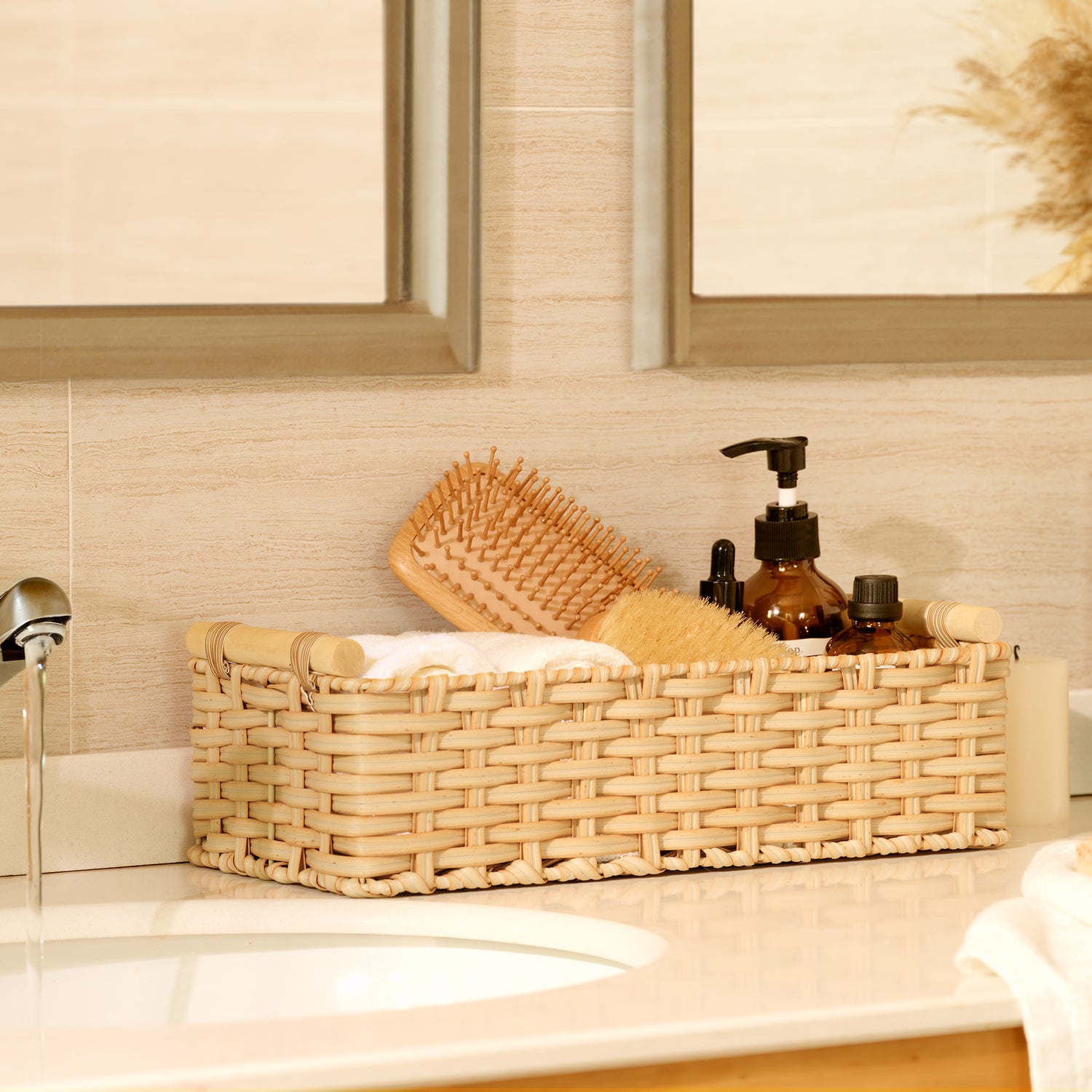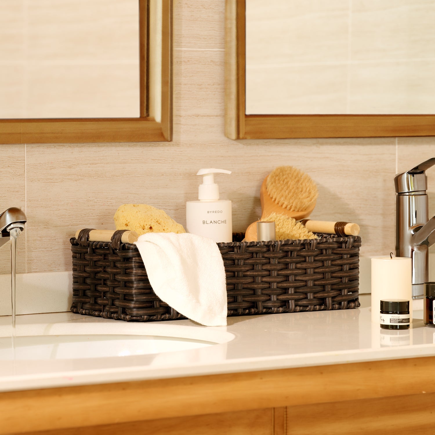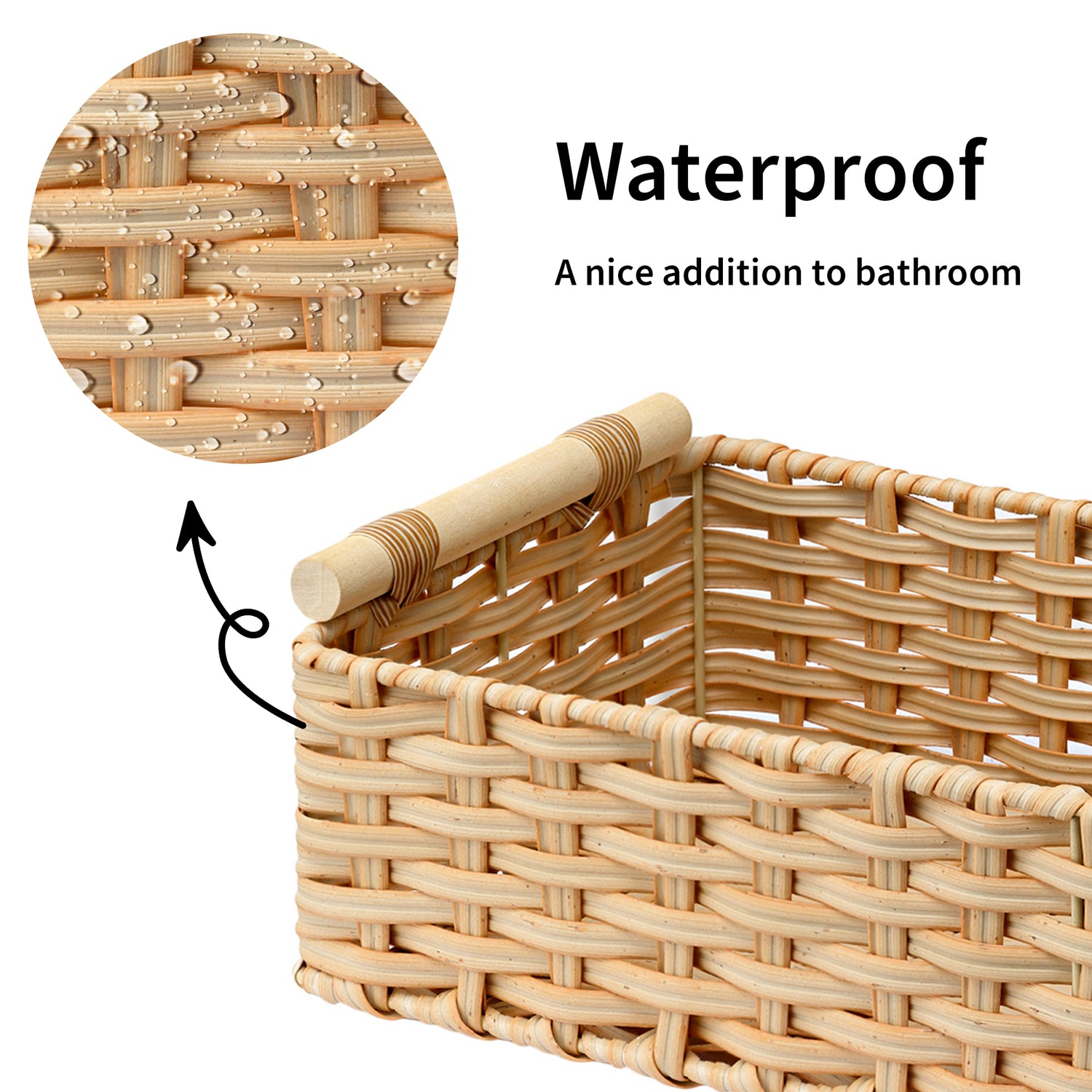 Waterproof Wicker Baskets with Handle - Brown is backordered and will ship as soon as it is back in stock.